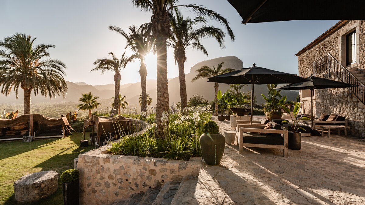 Das Spirit of Son Fuster bietet einen Panoramablick auf das Alaro-Zwillingsgebirge und ist ein idyllischer Rückzugsort auf Mallorca, Spanien, perfekt abgeschieden für große Gruppen und Mehrgenerationenaufenthalte.