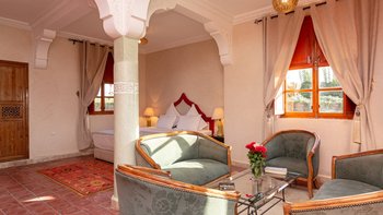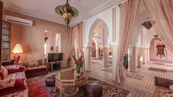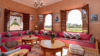 Diese sehr geräumige und komfortable Unterkunft ist ausgesprochen marokkanisch in seiner schönen Architektur und Dekoration und ist eine wunderbare Unterkunft für besondere Feiern oder Yoga Retreats.