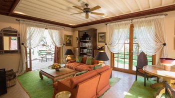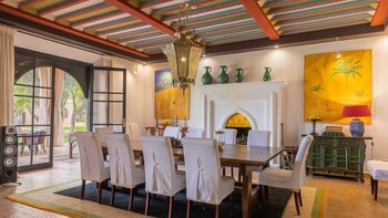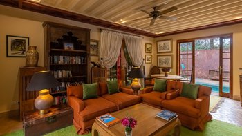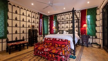 Die sieben Schlafzimmer der Villa sind mit einem Hauch von Exotica ausgestattet und können durch den Zugang zum privaten Pavillon mit eigenem Tauchbecken ergänzt werden. Zu den diskreten und zuvorkommenden Mitarbeitern zählen und der Küchenchef, der köstliche Abendessen mit lokaler und internationaler Küche zubereitet.