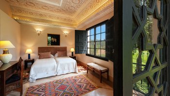 Villa Tamara ist ein beeindruckendes Landhaus, das 13 Kilometer südlich von Marrakesch an der Straße in das Ourika-Tal und das Atlasgebirge liegt. Es ist eine zwanzigminütige Fahrt vom Stadtzentrum und Flughafen entfernt. Dieses wundervolle Haus ist für alle Altersgruppen geeignet, von kleinen Babys bis hin zu weniger aktiven Großeltern. Erbaut von einem französischen Oberst im Jahr 1925, ist der Stil heute überwiegend mediterran und ergänzt die hohen Decken und hellen, geräumigen Zimmer. Traditionelle Dekorationstechniken wurden verwendet; Tadelakt (polierter Putz) funktioniert gut zusammen mit Zelige-Fliesen, Diss- und Bejmatt-Bricks. Denen Decken in der Villa sind 5 Meter hoch und die Wände 0,5 Meter dick, was eine hervorragende Isolierung gegen Hitze und Kälte der Winterabende bietet.