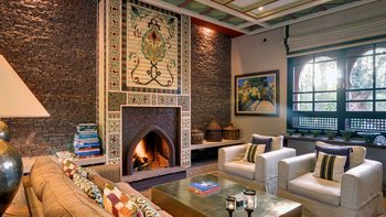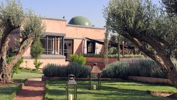Diese außergewöhnliche Villa befindet sich in einer von Bäumen und Laternen gesäumten Gartenanlage in der üppigen Palmeraie, etwas außerhalb der antiken Stadt Marrakesch. Dessen unverwechselbar von einem führenden lokalen Architekten entworfenes Haus ist eine beeindruckende Mischung aus traditionellem Handwerk und modernen Trends. Es verfügt über maßgefertigte Möbel, aufwendige Tadelakt-Putzarbeiten und im Esszimmer über eine riesige Deckenlampe, die in einem lokalen Souk zu finden ist und nun von einer speziell dafür angefertigten Kuppeldecke umrahmt wird. Dessen sehr stilvolle Wohnzimmer verfügt über Klimaanlage und Fußbodenheizung für ganzjährigen Komfort, einen offenen Kamin und Steinwände verleihen Charakter.