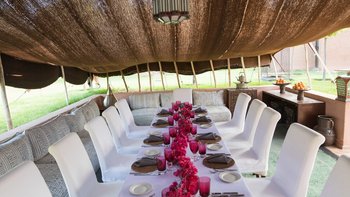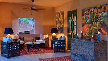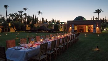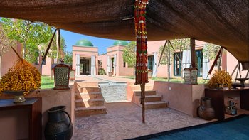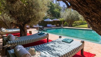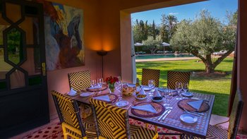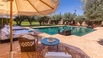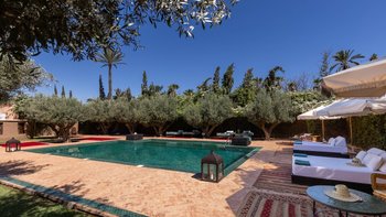 Diese Luxusvilla ist eine von fünf unabhängigen Villen, die das private Ezzahra-Anwesen bilden. Sie befindet sich in weitläufigen, wunderschönen Gärten mit Oliven- und Orangenbäumen, Lavendelbänken und langen Rasenflächen mit Dattelpalmen. Deren voll ausgestattete Villa perfektioniert das Gleichgewicht zwischen exzellentem Service und unkomplizierter Ungezwungenheit und im stilvollen Speisesaal oder im Freien serviert wird. Deren Azzaytouna schafft ein modernes marokkanisches Flair und verfügt über ein luftiges und kunstvolles Wohnzimmer mit offenem Kamin, gewölbter Decke und herrlichem Dekor, das die Natur hereinbringt.
