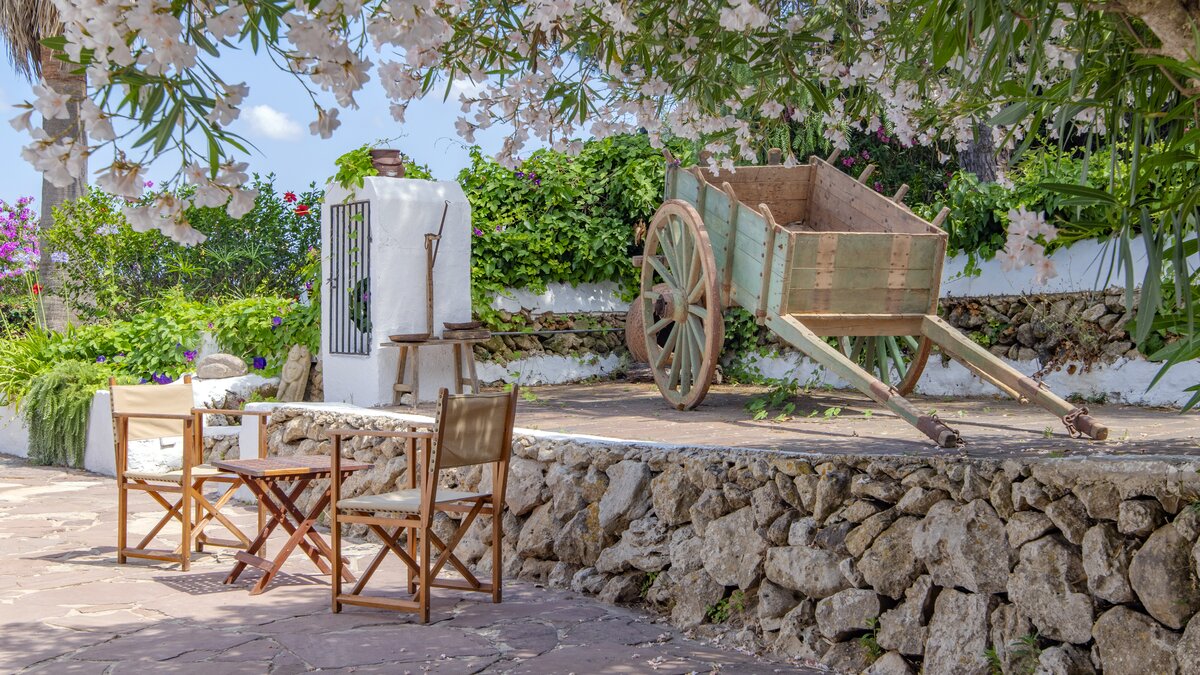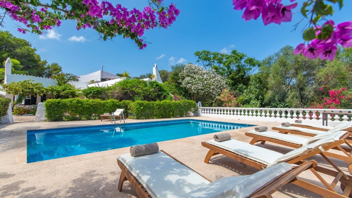 Die charmante und traditionelle Finca Bonita liegt inmitten einer atemberaubenden Landschaft inmitten grüner Gärten in der Nähe des Hafens von Mahón und des Strandes Sa Mesquida.