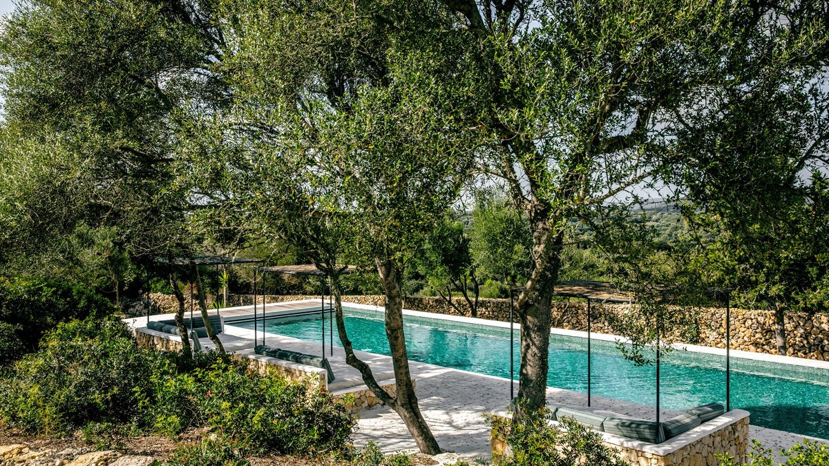 Obwohl die Finca über 1.000 Quadratmeter mit zwölf Schlafzimmern umfasst, ist die Aufteilung recht einfach. Im Erdgeschoss befindet sich das Herzstück des Anwesens von miteinander verbundenen Räumen aus der Eingangshalle. Einiger Sitzecken und die große Küche öffnen sich zur Terrasse. Des Weiteren gibt es ein Esszimmer mit einem einzigartigen, maßgefertigten Holztisch mit Designerstühlen und zwei Schlafzimmern mit hohen Decken. Eines Besonderheit des Erdgeschosses ist eine überdachte Loggia, um der Hitze des Tages zu entfliehen, und ein Fitness- oder Yoga-Raum. Der erste Stock hat mehr von einer starken Persönlichkeit mit einer reichen Farbpalette. Das Highlight des ersten Stocks ist der beeindruckende Gran Salòn, ein Wohnzimmer mit markanten Bodenfliesen, einer Marmorbar und einem Spielebereich, der durch mehrere Schlafzimmer ergänzt wird. Dieser Salòn ist ein Schaufenster für das Talent des Eigentümers, Vintage- und Auktionsstücke mit neuen Maßanfertigungen und Designerstücken zu kombinieren. Deren Hauptschlafzimmer öffnet sich zu einer privaten Terrasse und ein Junior-Schlafzimmer öffnet sich zu einer kleineren Terrasse. Deren Herzstück des zweiten Stocks, das eher minimalistisch ist, ist ein informeller Medien-/TV-Raum, der von weiteren Schlafzimmern umgeben ist. Jedem Schlafzimmer ist ein Unikat mit Blick auf den Sonnenaufgang oder den Sonnenuntergang. Mit einer ruhigen, erholsamen Farbpalette in sanften Heritage-Tönen sind die großen, hellen Zimmer stilvoll eingerichtet. Sie verfügen über Super-Kingsize-Betten, Sitzbereiche in einigen der größeren Schlafzimmer und Waschbecken für Sie und Ihn in einigen der Bade- oder Duschräume.