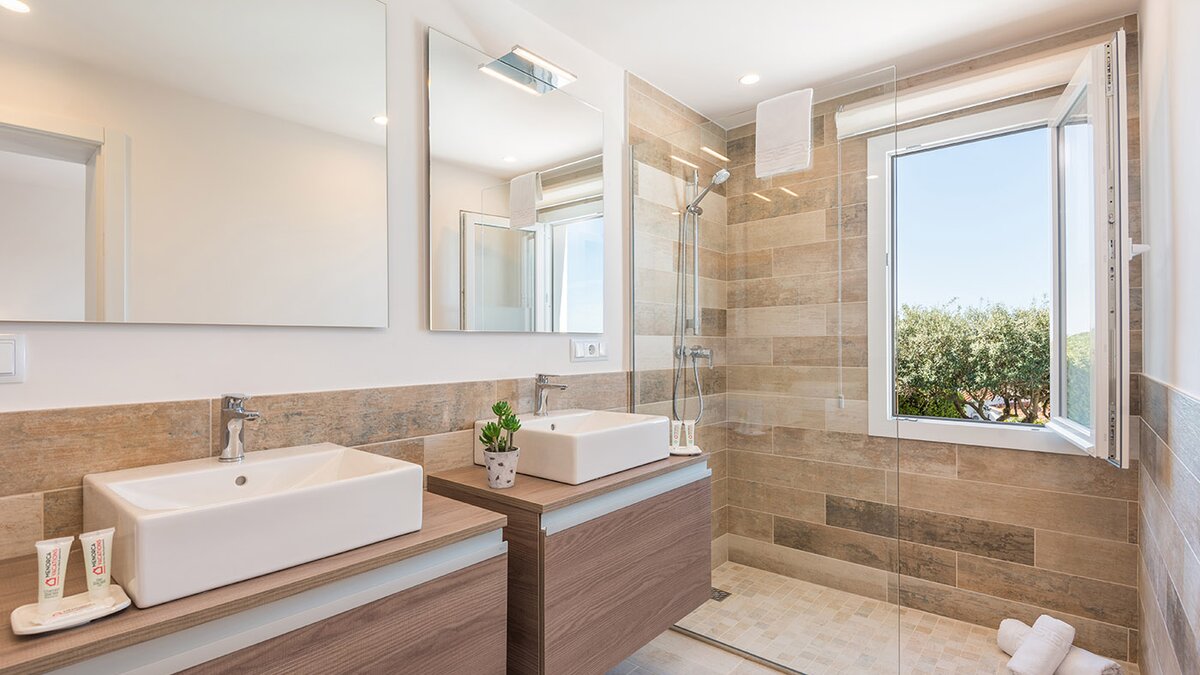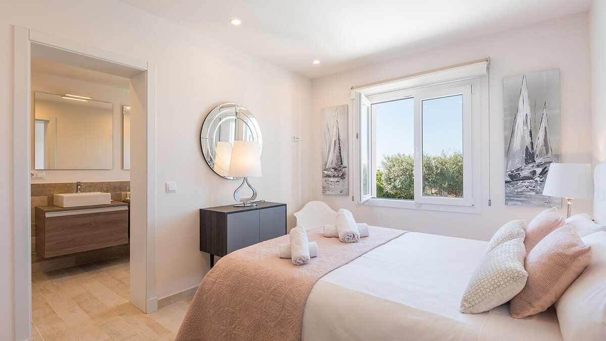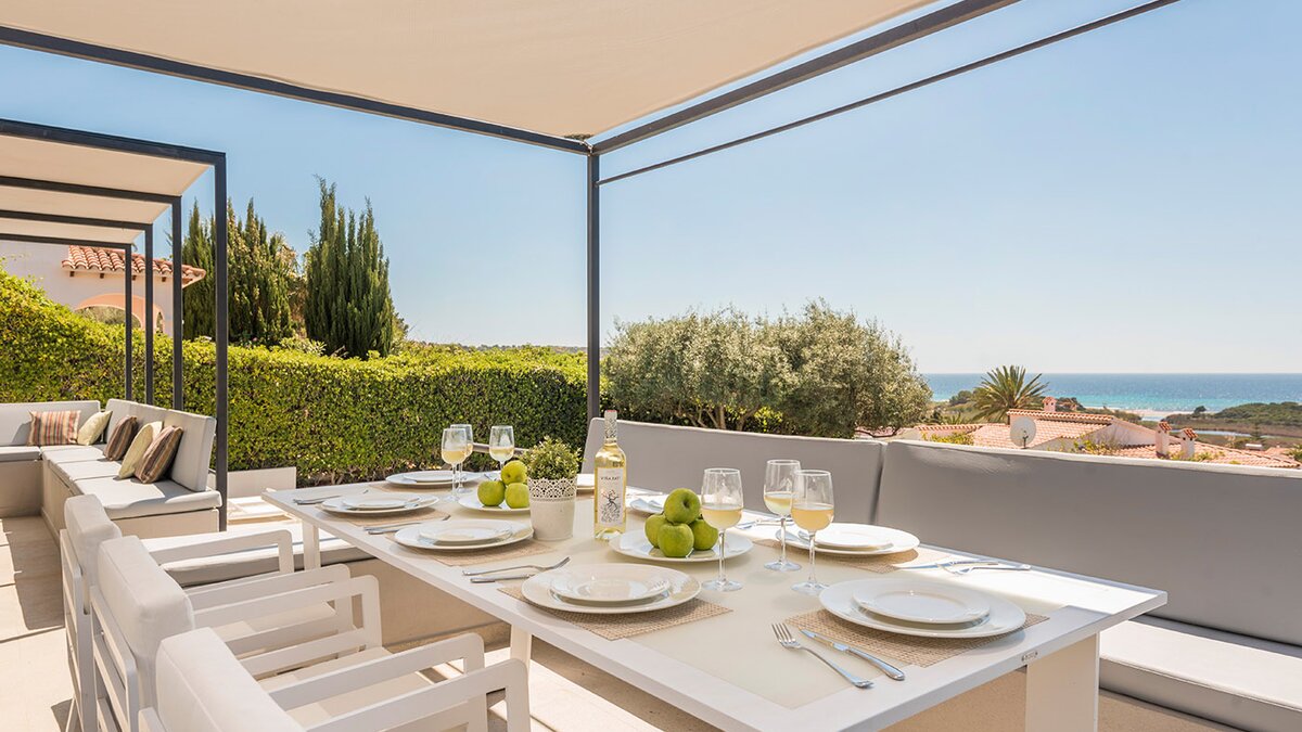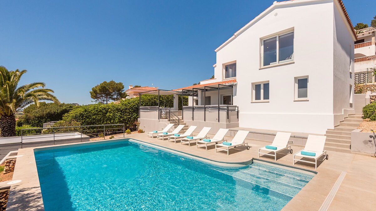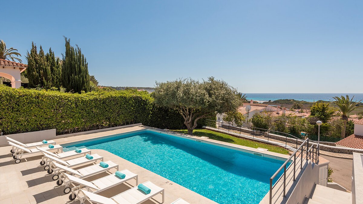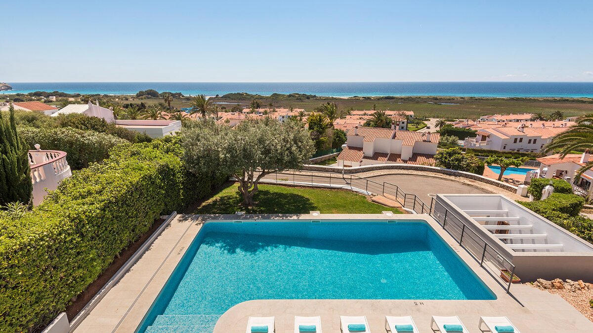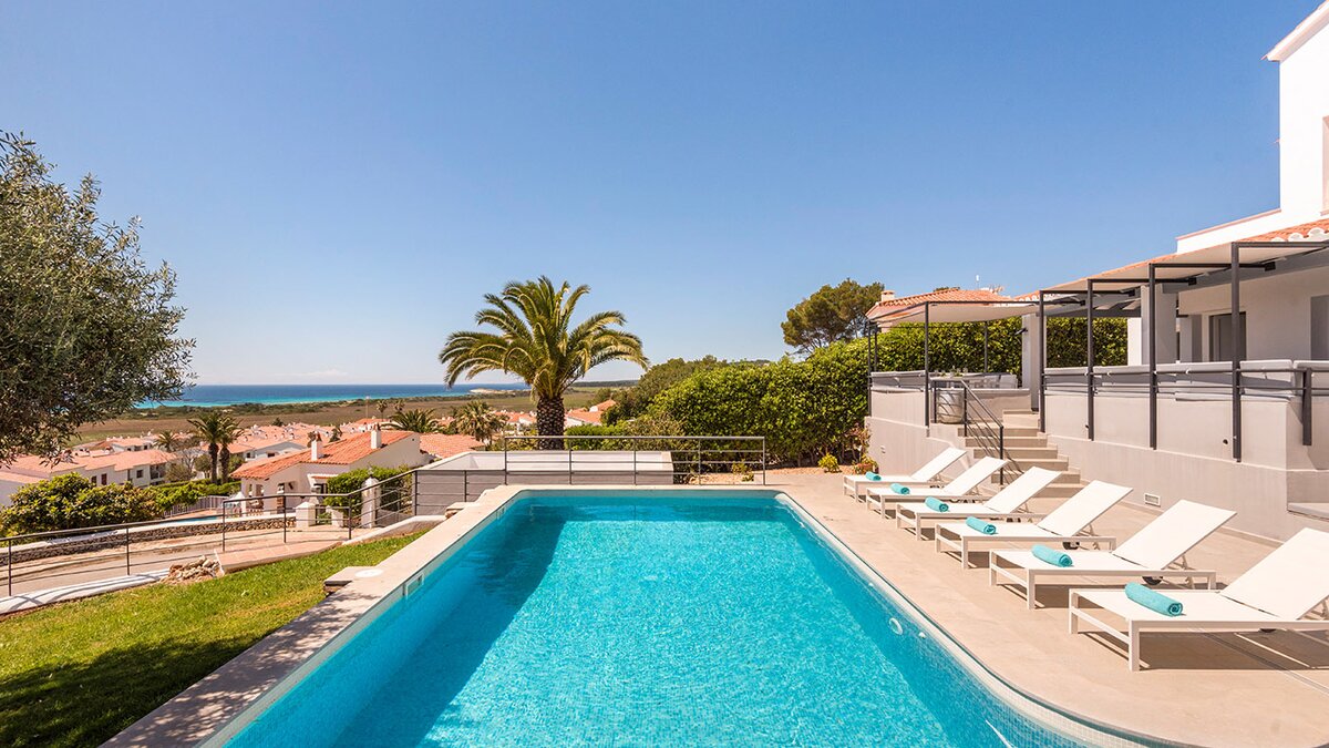 Eine elegante und stilvolle Villa auf Menorca, dieses komfortable Haus mit Panoramablick auf das Meer ist eine wunderschöne Wahl für ein Treffen von Familie und Freunden.