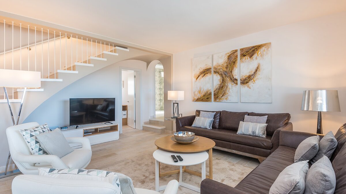 Das scharfe, monochrome Äußere dieser modernen Villa ist ein Hauch von Stil, aber es wird gleichermaßen Wert auf Form und Funktion gelegt, so dass der Komfort in den sehr modernen Innenräumen der Villa del Sol nicht beeinträchtigt wird. Kühne Kunstwerke und sorgfältig ausgewählte Kunstobjekte ergänzen große Sofas mit Kissen, schicke Schlafzimmer und Duschräume sind jeweils individuell gestaltet, und die Frühstücksküche ist ebenso intelligent wie gut ausgestattet. Mit Klimaanlage, WLAN und Satellitenfernsehen bietet das Haus eine gute Mischung aus drei Zweibett- und zwei Doppelzimmern, die für zwei Familien geeignet sind und einen herrlichen Blick über die Terrakotta-Dächer bis hin zum tiefblauen Meer der Bucht bieten.