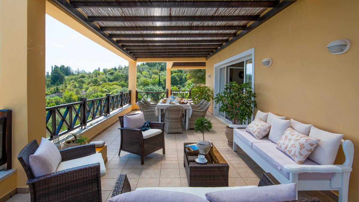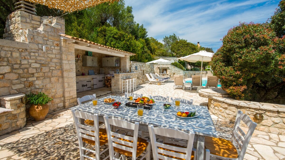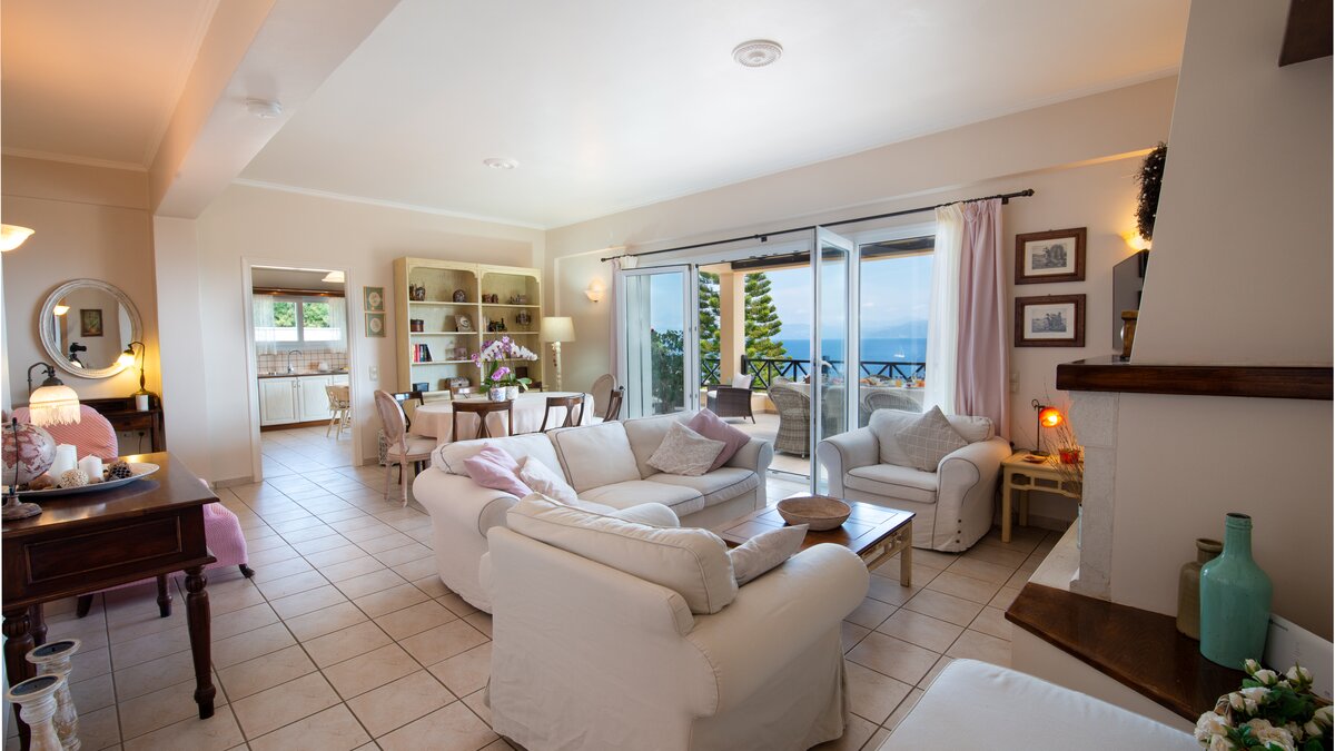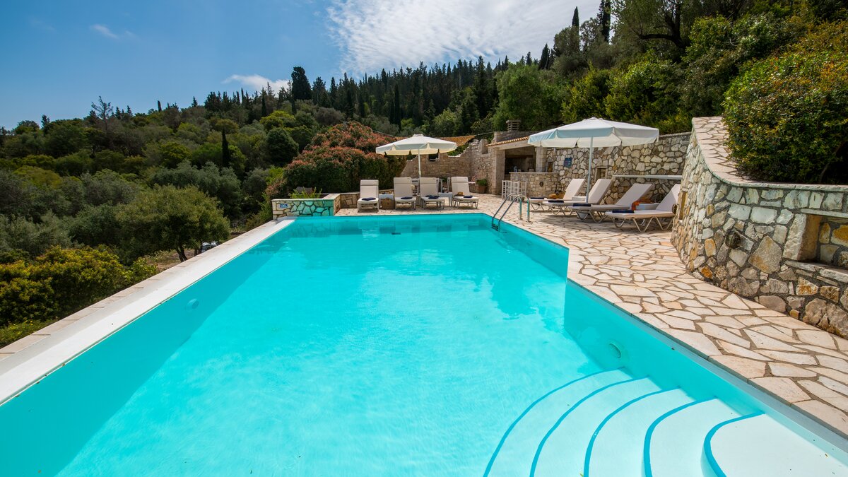 Die Hafenrestaurants von Gaios sind nur 3 km südlich; die Tavernen am Wasser in Loggos und Lakka sind beide nur 7 km nördlich; und ein ruhiger Kieselstrand liegt nur 50 Meter von diesem komfortablen Haus entfernt, sodass die Gäste schnell im Einklang mit dem entspannten Tempo der Insel sein werden. Dessen Villa Estia blickt auf den Sonnenaufgang an den Hängen der Küste und blickt auf die Baumkronen mit faszinierenden Panoramen, auf den Kanal, seine ständig wechselnde Flottille aus kleinen Schiffen und Segelbooten und auf die hitzeverhangenen Berge des Festlands. Perfekt positioniert, um die betörende Landschaft zu genießen, erstreckt sich eine breite Terrasse entlang der Villa, die für Mahlzeiten im Freien eingerichtet und im Schatten gekühlt ist. Liegestühle befinden sich hinter dem Pool.