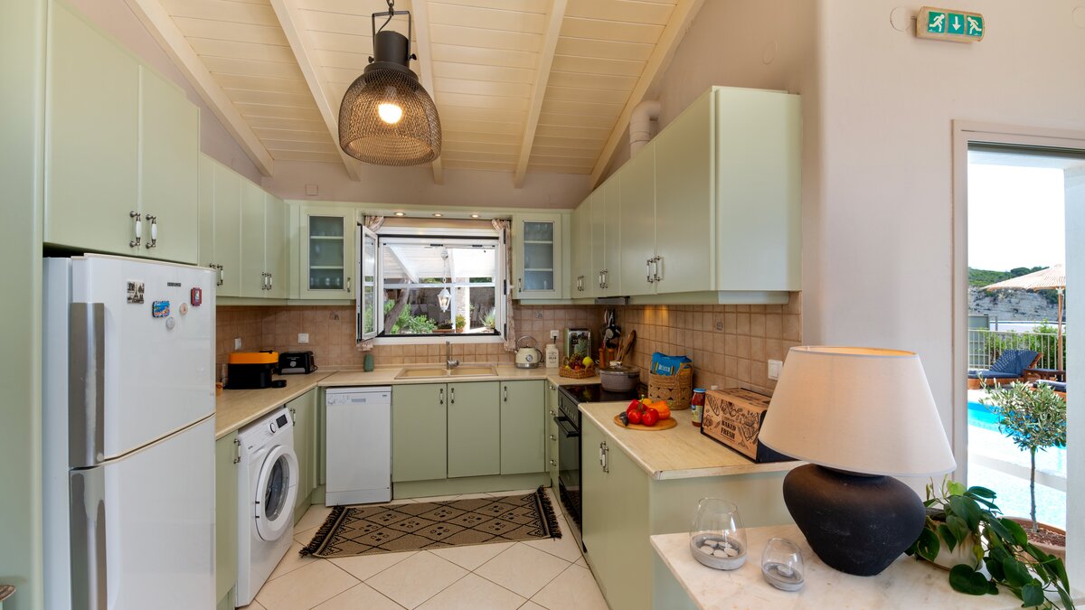 Die Gäste werden von einem schönen Swimmingpool begrüßt, der von einer weitläufigen Terrasse umgeben ist und einen Panoramablick auf das Ionische Meer bietet. Deren Außenbereich ist ein echtes Highlight, mit luxuriösen Sonnenliegen, Loungebereichen und zwei überdachten Essbereichen, die sich ideal für Mahlzeiten im Freien eignen. Deren Außenküche mit Pizzaofen lädt zu kulinarischen Abenteuern unter dem griechischen Himmel ein. Eine Tischtennisplatte sorgt für Unterhaltung im Freien, während die erstklassige Lage der Villa einen einfachen Zugang zu den nahe gelegenen Sehenswürdigkeiten ermöglicht. Der Strand Avlaki ist nur 1,2 km entfernt und die charmante Stadt Gaios mit ihren zahlreichen Geschäften, Restaurants und Annehmlichkeiten nur 1,8 km von diesem idyllischen Rückzugsort entfernt. Etwa die gleiche Entfernung befindet sich der Strand Calisco, 1,6 km von der Villa entfernt, während der Strand Plakes 2,8 km entfernt ist. Für weitere lokale Optionen gibt es einen Supermarkt nur 500 m von der Villa entfernt.