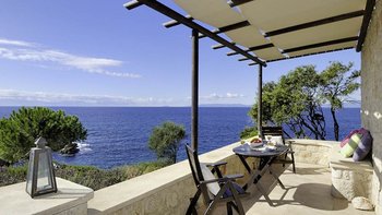 Diese ruhig gelegene, einstöckige Villa, die sich die niedrige Landzunge mit dem Schwestervilla Pelagia House teilt, nutzt das Gute aus der herrlichen Aussicht mit zwei möblierten Terrassen mit Blick auf das Meer und einem privaten Jacuzzi am Klippenrand, der natürlich von Grünem abgeschirmt ist. Innerhalb der Villa, die mit Feng Shui im Hinterkopf entworfen wurde, öffnet sich ein großzügiges Schlafzimmer mit Doppelbett zur Terrasse mit Meerblick, das einladende Badezimmer ist komplett mit Hydromassage-Badewanne und -Dusche ausgestattet. Dessen geräumige Wohn- / Esszimmer grenzt an eine kleine Küche und hat zwei Glastüren zu beiden Terrassen. Durchgehend mit müheloser Eleganz eingerichtet, verfügt das kühle und beruhigende Dekor mit kahlen Steinmauern und Naturholz, was eine Atmosphäre der Gelassenheit erzeugt und der Villa in Designmagazinen Beifall einbringt. Felsenbaden direkt unterhalb des Pelagia Cottage kann ideal für ein Bad am frühen Morgen sein, und für Spaziergänge am Wasser entlang des Sandes ist der Strand von Stoupa nur einen Spaziergang entfernt, ebenso wie die Einrichtungen des Resorts im schlichten Dorf Stoupa.