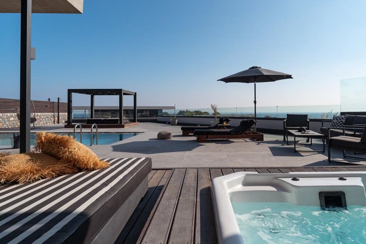 Dieses außergewöhnliche Anwesen auf Rhodos verfügt über hervorragende Einrichtungen, einen verträumten Infinity-Pool, ein atemberaubendes Interieur und einen privaten Jacuzzi.