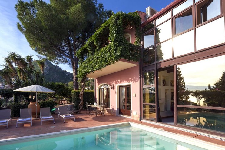 Die Villa Perricone bietet eine seltene Mischung aus modernem Luxus und sizilianischer Seele mit Panoramablick auf das Meer, einem privaten Spa und einem eigenen Weinkeller, alles in der Nähe des zeitlosen Reizes Taorminas.