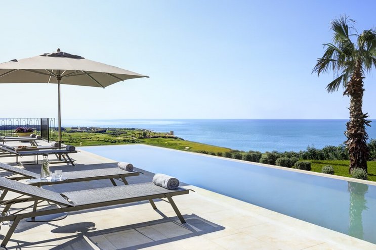 Diese Villa in erster Meereslinie mit drei Schlafzimmern im Verdura Resort ist der ideale Aufenthalt für diejenigen, die die besten Einrichtungen und den italienischen Lebensstil genießen möchten.