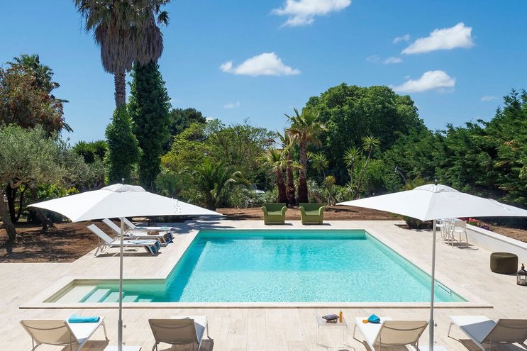 Die Villa Pomelia liegt in der Nähe der Strände von Marzamemi, Sizilien, und ist ein eleganter Rückzugsort mit drei Schlafzimmern für kleine Gruppen. Sie verfügt über einen privaten Pool und eine herrliche Küche und einen Essbereich im Freien.