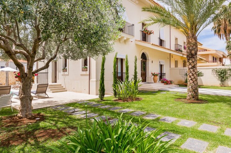 Diese Luxusvilla auf Sizilien ist ein prächtiges, historisches und gastfreundliches Haus, das Eleganz und Genuss verspricht, in der herrlichen Umgebung eines Orangenhains.