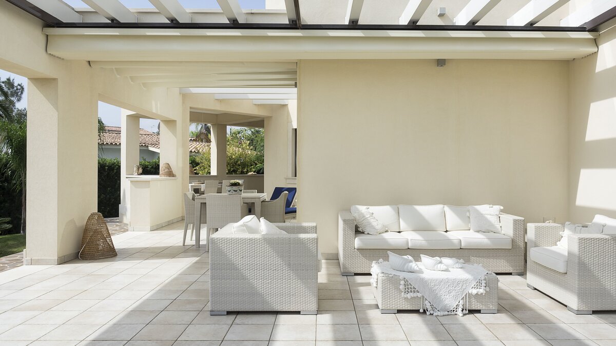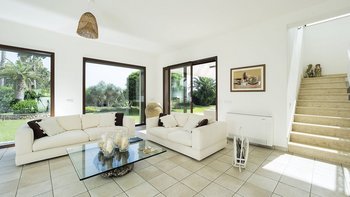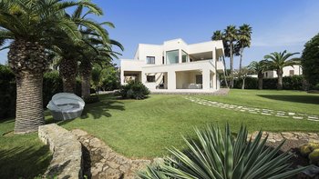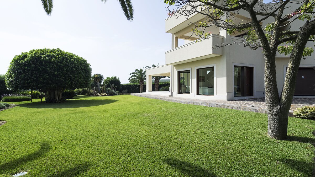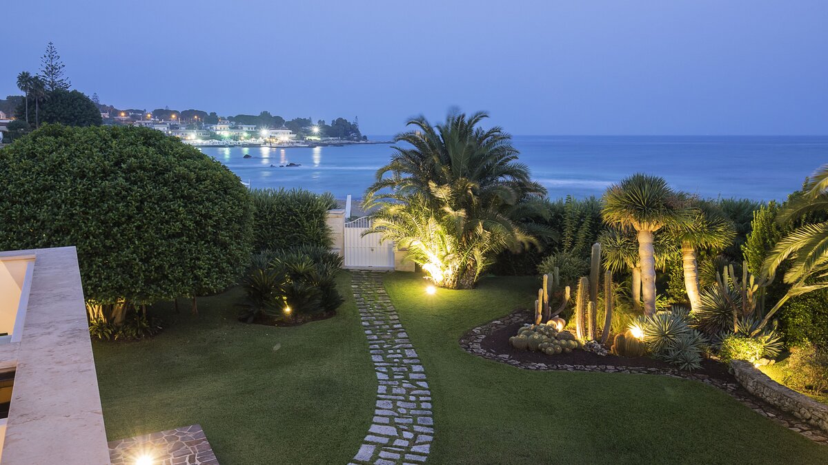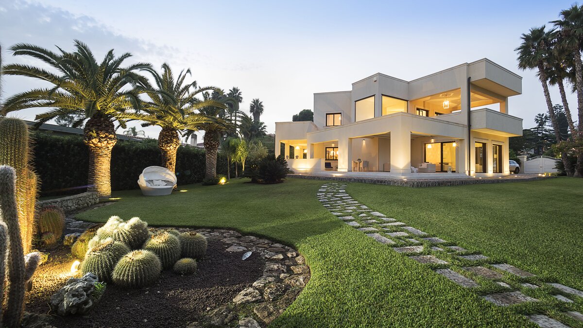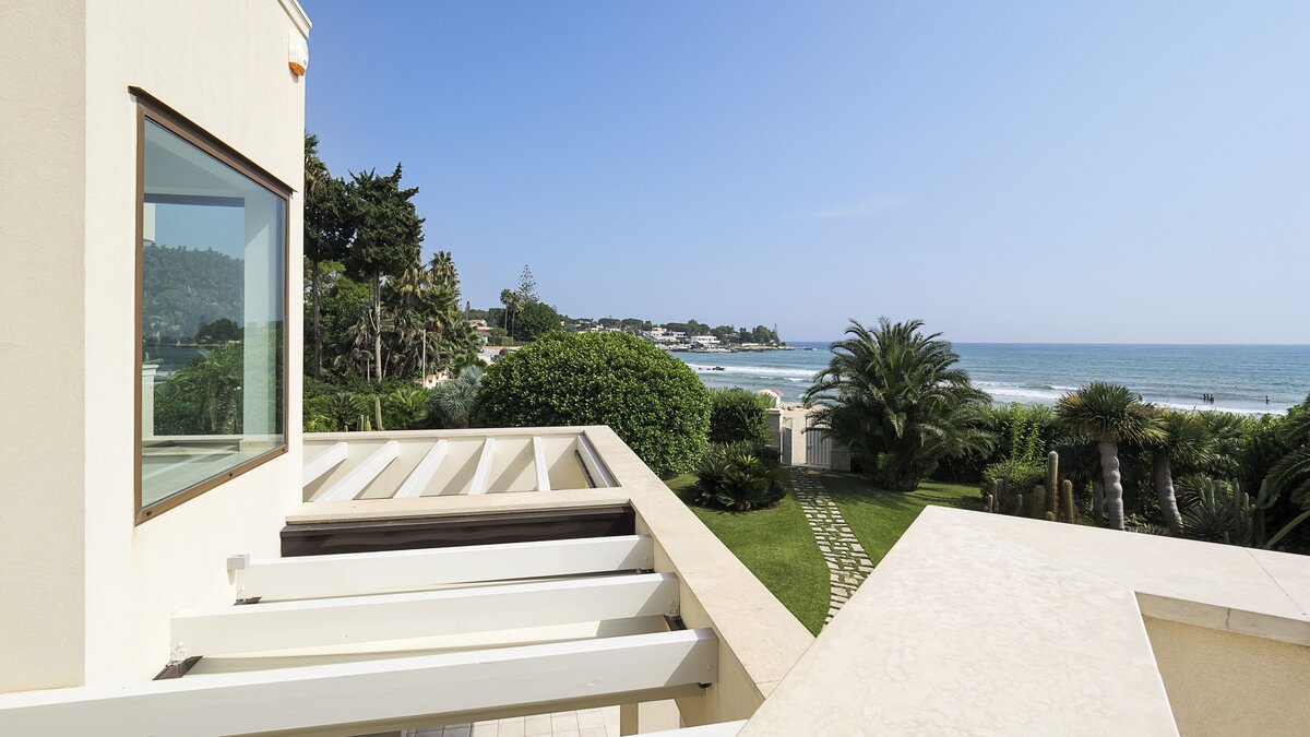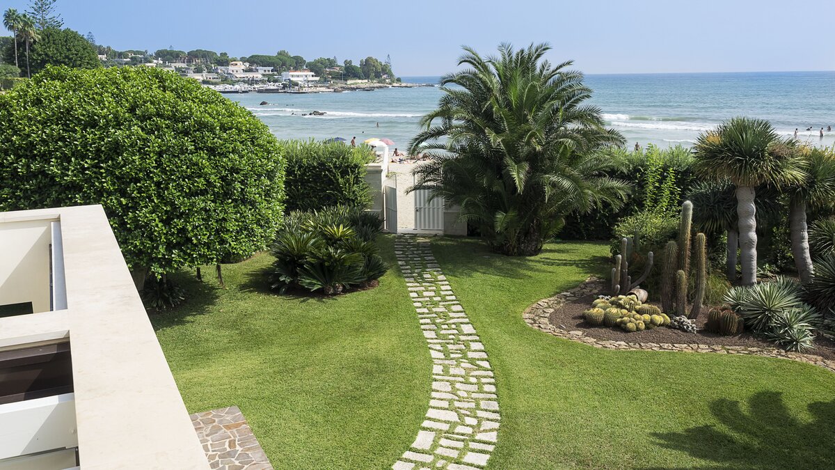 Diese moderne Villa am Meer profitiert von einem Gartenzugang zum Sandstrand von Fontane Bianche und befindet sich in einem der beliebtesten Ferienorte an der Ostküste Siziliens.