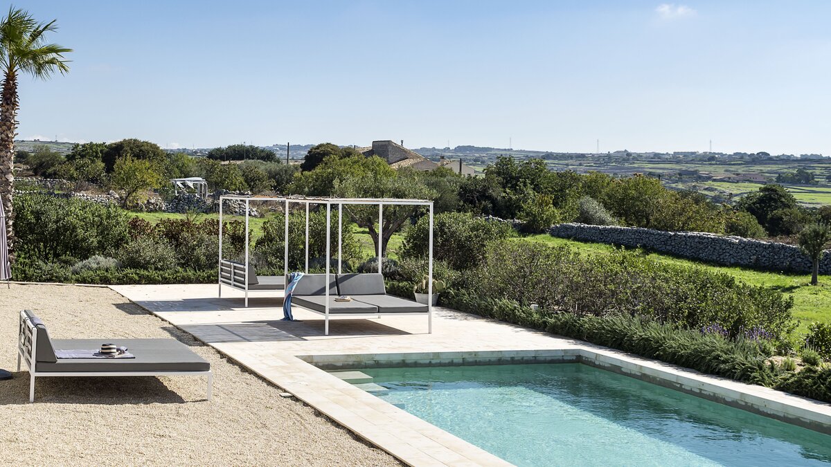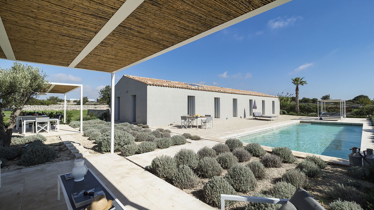Eingebettet in die zeitlose, ländliche Landschaft mit sanften Feldern und Trockenmauern zwischen der schönen Barockstadt Ragusa und der Küste, ist dieses sehr komfortable, moderne Anwesen geschmackvoll und mit Liebe zum Detail eingerichtet, mit einer Mischung aus modernen Designstücken und Familienstücken. Einem gepflegten Garten von etwa einem halben Hektar mit aromatischen und Zierpflanzen umgibt den Pool und die Villa mit Essbereich in Sonne und Schatten.