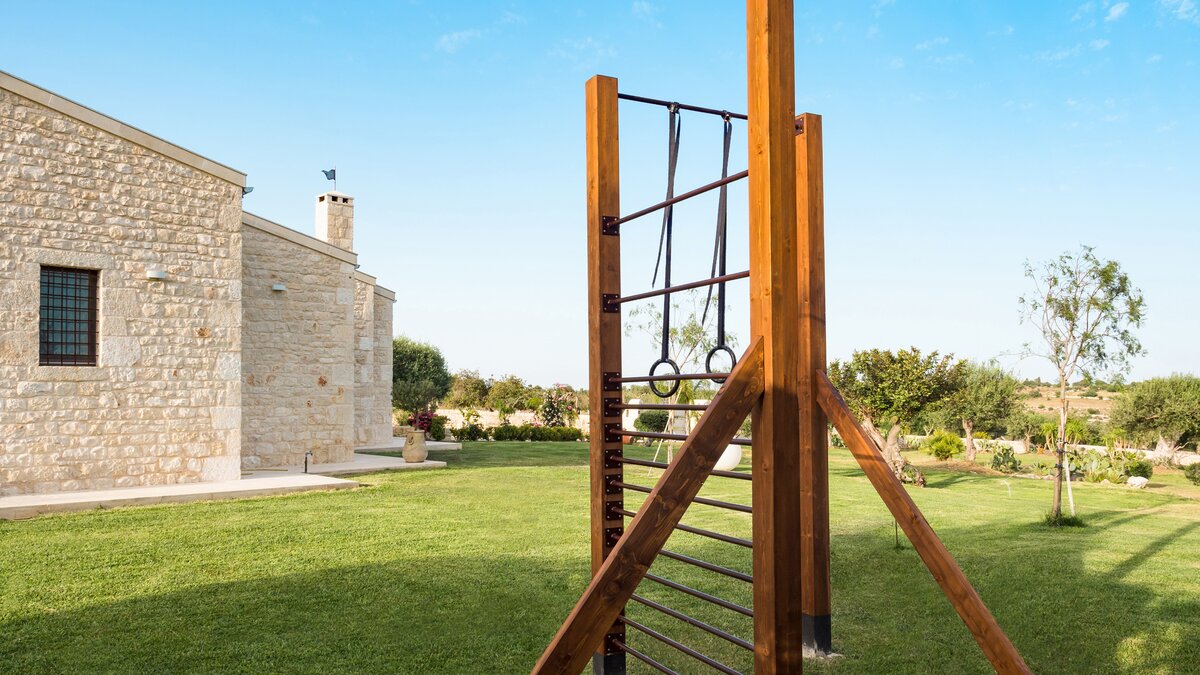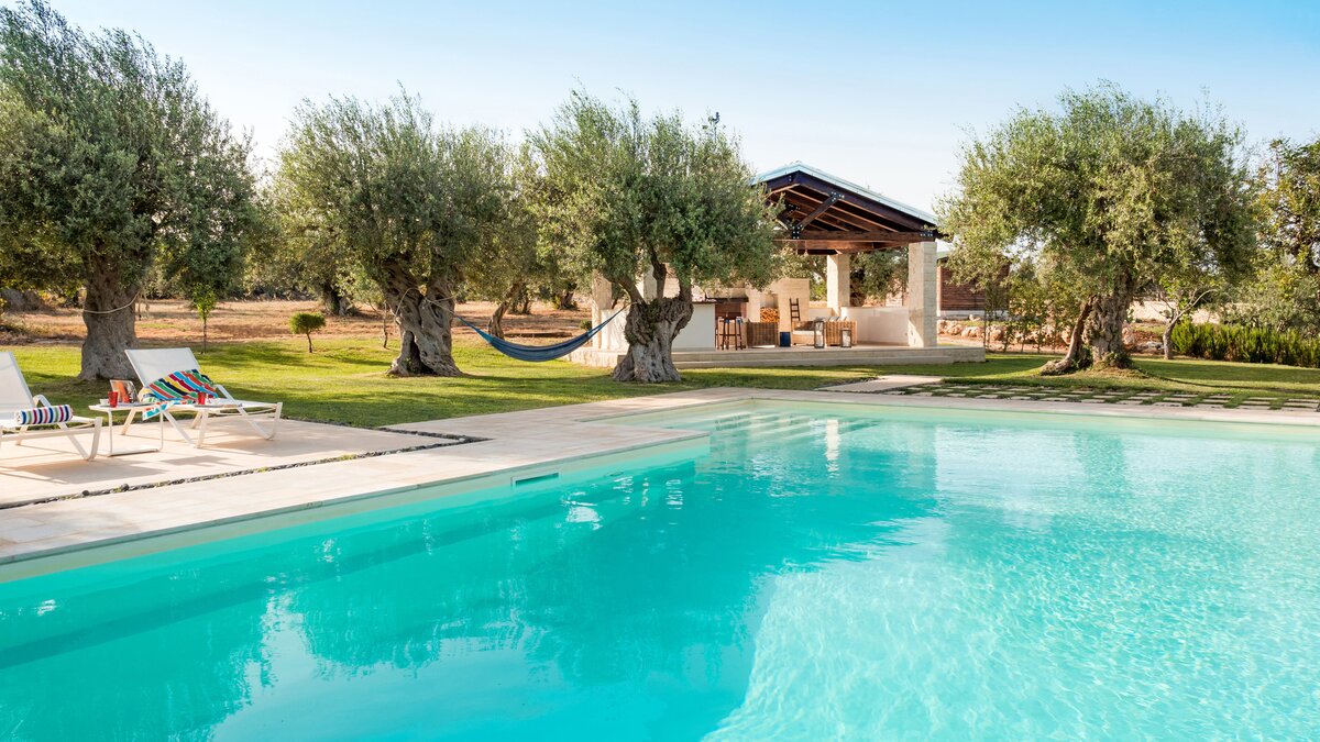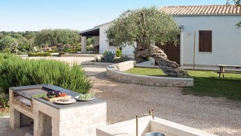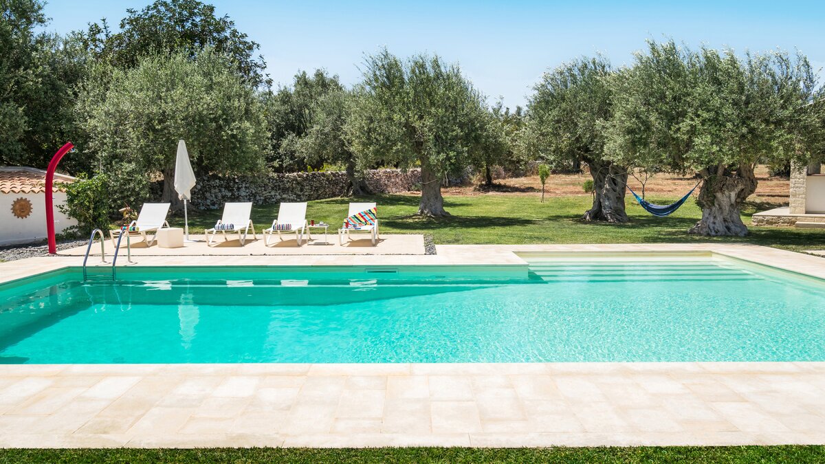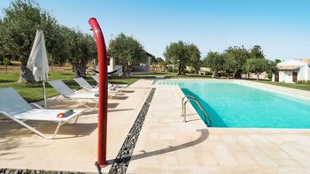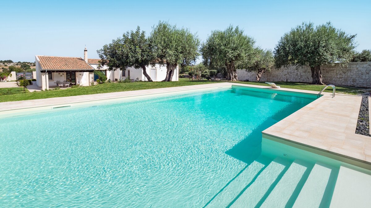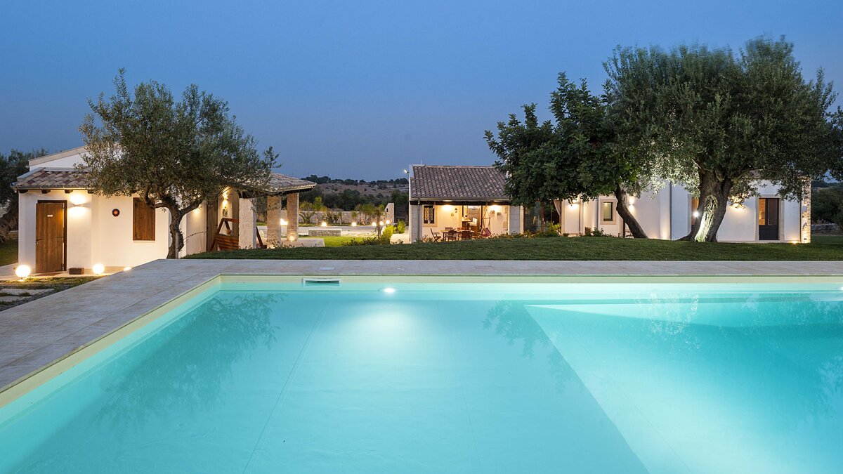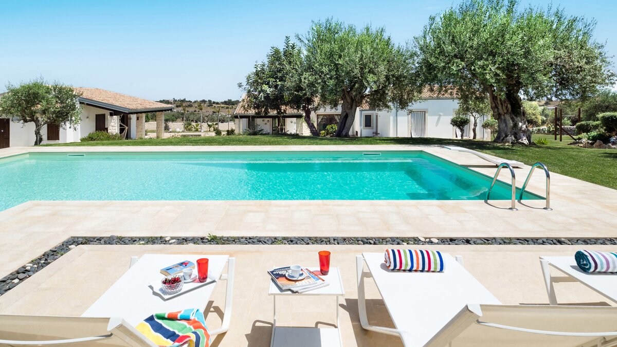 Im Außenbereich befindet sich der 12-Meter-Pool mit römischer Treppe, der von einem baumbestandenen Garten umgeben ist und von einer Terrasse mit Liegestühlen umgeben ist – der perfekte Ort, um sich bei einem erfrischenden Getränk zu entspannen. Nach einem Sprung in den Pool können Sie sich mit einem Buch in die nahe gelegene schattige Hängematte zurückziehen. Wem das alles ein wenig zu entspannend ist, der befindet sich auch in einer beneidenswerten Position, um sowohl die barocken Städte des Noto-Tals wie Modica, Ragusa und Noto und auch die nahe gelegenen Sandstrände zu besuchen.