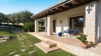 Diese neu erbaute, einstöckige Villa bietet ein wunderschönes Interieur mit allem Komfort, einschließlich Klimaanlage und Zentralheizung, WLAN, Sat-TV, Geschirrspüler und Grill. Es gibt eine atemberaubend geflieste Küche mit französischen Türen, die Zugang zur Essterrasse im Freien bietet. Deren Küche führt zu einem großen, luftigen Wohn-/Essbereich mit freiliegendem Mauerwerk, Holzbalken und Glasschiebetüren, die zur Terrasse und zum Garten führen. Es gibt drei geräumige, aber gemütlich eingerichtete Schlafzimmer, die sich ein gut ausgestattetes Duschbad teilen. Ein weiteres Duschbad befindet sich in einem angrenzenden Gebäude. Es gibt einen neu verfügbaren Gästeanbau mit zwei Schlafzimmern.