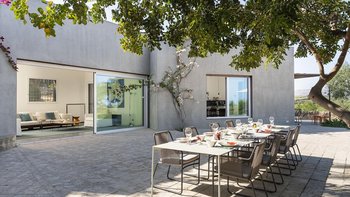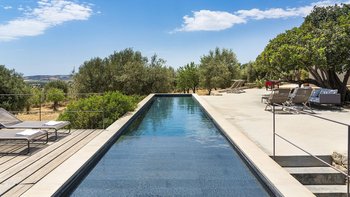 Das Cielo Mare ist ein auffallendes modernes Anwesen in privilegierter Lage, nur wenige Fahrminuten von fantastischen Stränden und historischen Städten entfernt. Deren modernes Interieur ist in klaren neutralen Weiß- und Grautönen gehalten und durchgängig stilvoll eingerichtet. Deren Erdgeschoss eignet sich für den Innen- und Außenbereich, mit einem großen Wohnzimmer, das über raumhohe Glastüren auf die Terrasse im Freien führt. Deren stilvolle Küche ist komplett ausgestattet mit allen notwendigen Notwendigkeiten und einem Esstisch im Innenbereich. Es gibt vier schöne Schlafzimmer mit eigenem Bad, zwei im Haupthaus und zwei im Gästeanbau. Deren einzigartige 18 m lange Pool ist eines unserer Lieblingsmerkmale, mit Sonnenschirmen und Liegen am Pool, auf denen Sie die umliegende Aussicht genießen können.