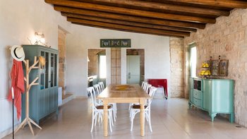 Dieses kürzlich renovierte Bauernhaus verbindet nahtlos traditionellen sizilianischen Charme mit modernem Wohnen und bietet einen Panoramablick auf die hügelige Landschaft von Ibla und das azurblaue Mittelmeer dahinter.