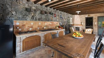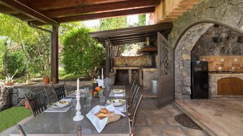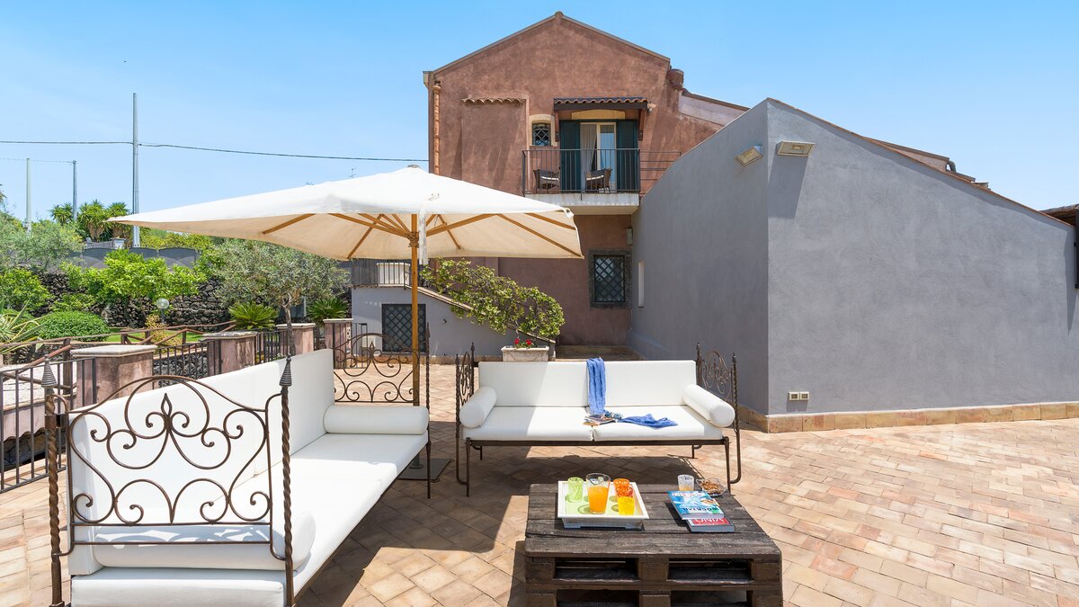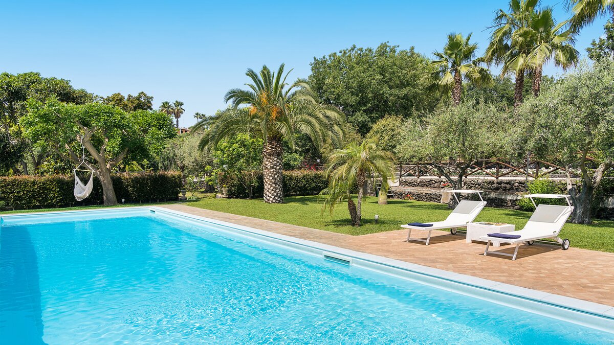 Nur eine kurze Autofahrt von der belebten Küstenstadt Acireale entfernt, am Fuße des Ätna, liegt diese zweistöckige Villa in ruhiger Lage inmitten ausgedehnter, über einen Hektar großer Gärten mit Rasenfläche. Der Schwerpunkt liegt auf einem sehr großen, einladenden Pool mit Liegestühlen zum Entspannen. Il Giardino Segreto ist ein ideales Ziel, um verschiedene Städte, die Küste und den Ätna zu besuchen und zeichnet sich durch großzügige Wohnbereiche im Innen- und Außenbereich aus. Draußen gibt es einen Essbereich im Freien und eine Terrasse mit Stufen zu einer möblierten Terrasse mit Blick auf den PRIVATER POOL und die gepflegten Gärten. Stufen weiter führen zu einer charmanten Sommerküche mit einem langen Tisch und einem schattigen Essbereich für Mahlzeiten im Freien.