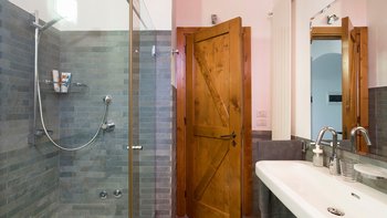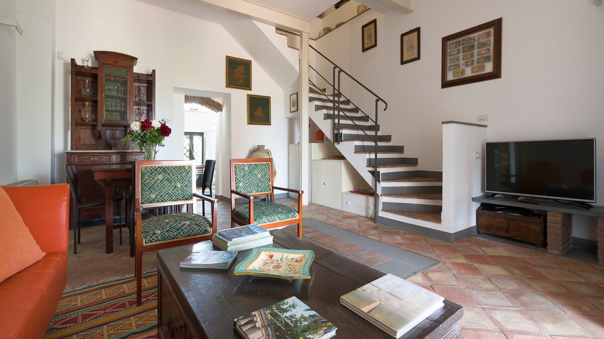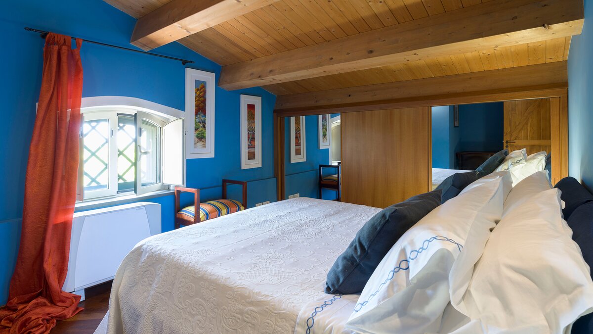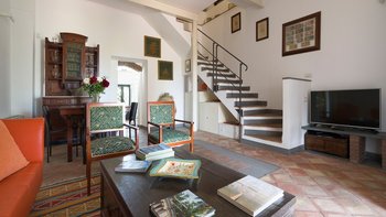 Mit gefliesten Böden, frischen Weißen, hellen Farbtönen und antiken Stücken verbindet diese Villa traditionelle Eleganz mit einem modernen Stil und dem Komfort moderner Einrichtungen. Ins Innere führt das einladende Wohnzimmer zur gut ausgestatteten Küche mit direktem Zugang zur Terrasse; Treppen hinunter führen zu einem weiteren Raum auf verschiedenen Ebenen, der zum Lesen genutzt wird, und weitere Treppen führen zum Außenbereich. Im Obergeschoss befindet sich ein Hauptschlafzimmer mit Kingsize-Bett und Bad en suite mit Zugang zu einem Balkon. Der Rest der Ebene wird durch zwei Doppelschlafzimmer mit Kingsize-Betten ergänzt, die sich ein Duschbad teilen.