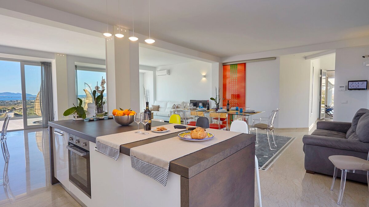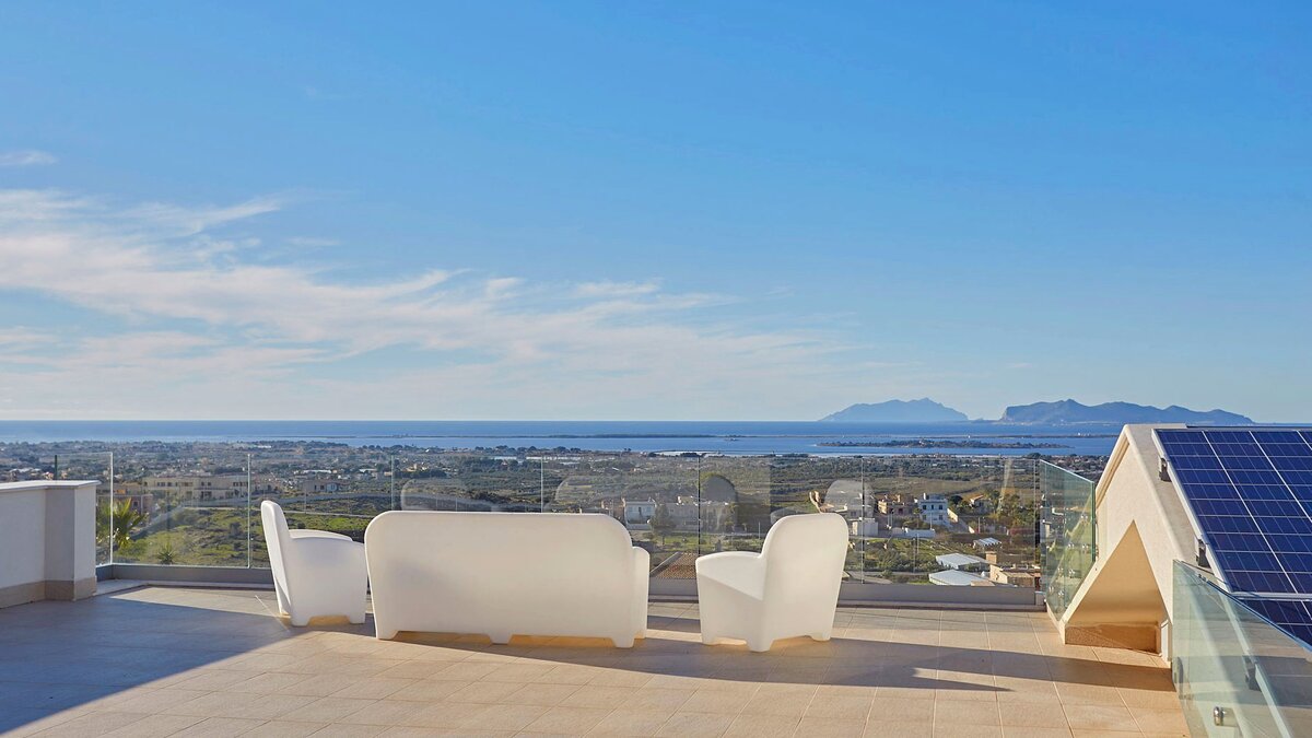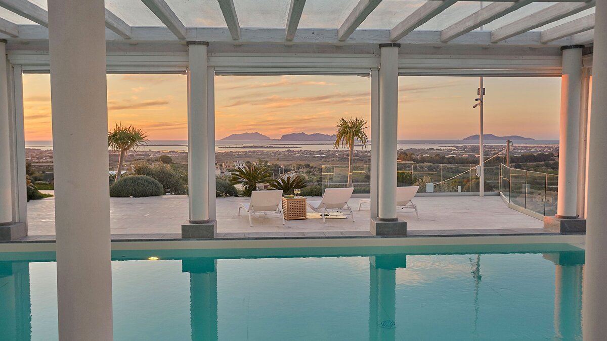 Islands View ist eine atemberaubende, moderne Villa mit Blick auf die schönen Ägadischen Inseln. Deren Anwesen verfügt über eine außergewöhnliche Panoramaterrasse, einen überdachten Pool mit Hydrotherapie und eine traditionelle Sauna. Dieser minimalistische Villa erstreckt sich über zwei Etagen und ist in frischem Weiß eingerichtet und verfügt über große Terrassen und raumhohe Glastüren im gesamten Gebäude. Deren anspruchsvolle und doch einfache Interieur bietet ein Gefühl von Komfort und Luxus. Deren erhöhte Erdgeschoss umfasst ein großes offen geschnittenes Wohn- und Esszimmer mit einer gut ausgestatteten Küche. Ebenfalls auf dieser Etage befinden sich zwei Doppelschlafzimmer mit Dusche en suite. Von dieser Etage aus führt eine Treppe hinunter in eine untere Ebene mit einer Sauna, einem offenen Ess- und Sitzbereich mit Küchenzeile und drei Doppelzimmer, jedes mit eigenem Bad mit Dusche. Des Restaurant Baglio Oneto, ein Weingut und Hotel, ist für Nicht-Einwohner geöffnet und ist zu Fuß erreichbar. Weitere Geschäfte und informelle Restaurants sind im Umkreis von 600 M und es gibt viele Geschäfte, Restaurants und Weingüter in atmospherica Marsala nur eine kurze Autofahrt entfernt. Den Ägadischen Inseln können leicht mit dem Tragflächenboot erreicht werden und Bootsausflüge können organisiert werden. Wir empfehlen Ihnen auch einen Besuch des Naturschutzgebietes Stagnone, wo Sie herrliche Sonnenuntergänge in einer einzigartigen Landschaft aus Salzpfannen und Windmühlen beobachten können.