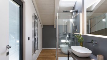 Das Erdgeschoss verfügt über eine großzügige Küche, ein Esszimmer und ein Wohnzimmer mit viel Tageslicht und Fenstertüren. Daneben gibt es zwei Doppelschlafzimmer mit Kingsize-Betten und ein eigenes Duschbad.