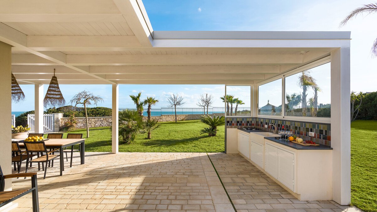Onda Blu ist eine Villa im Erdgeschoss mit makellos gepflegten Gärten und unwiderstehlichem Meerblick, ideal für einen Familienurlaub.
