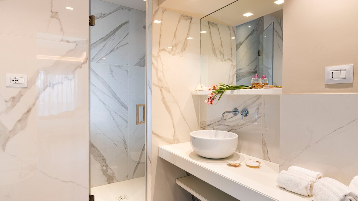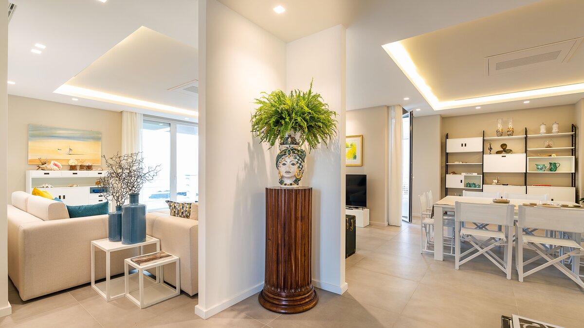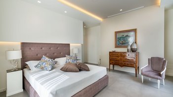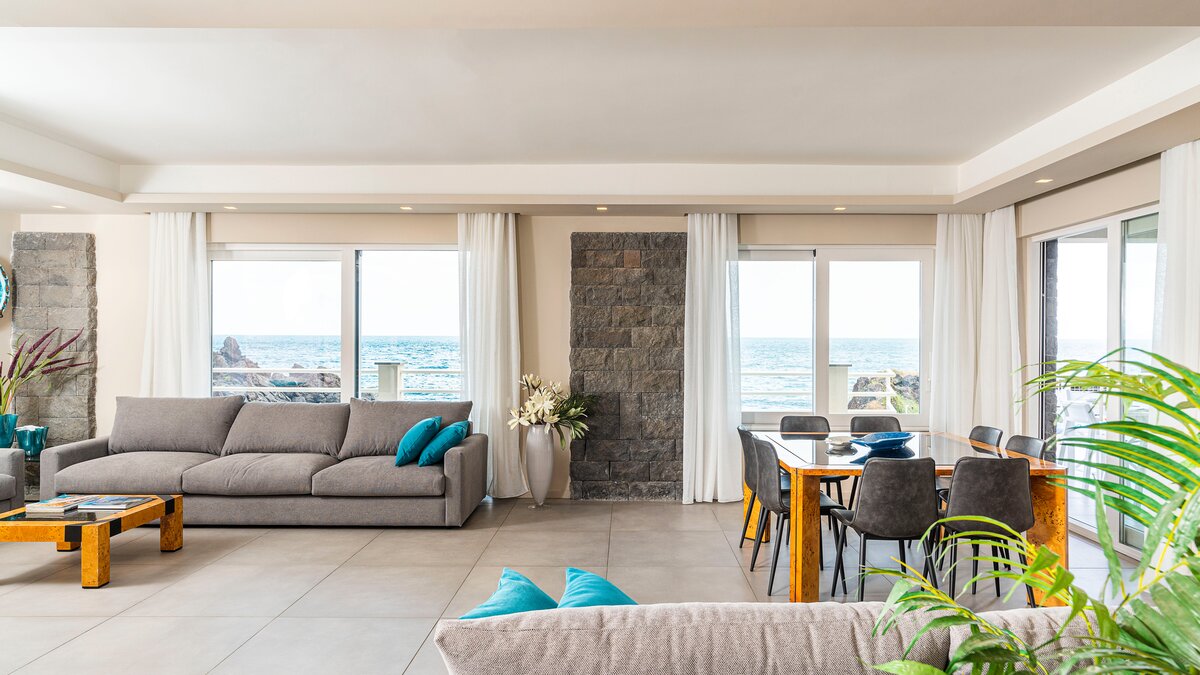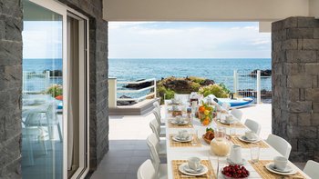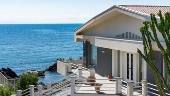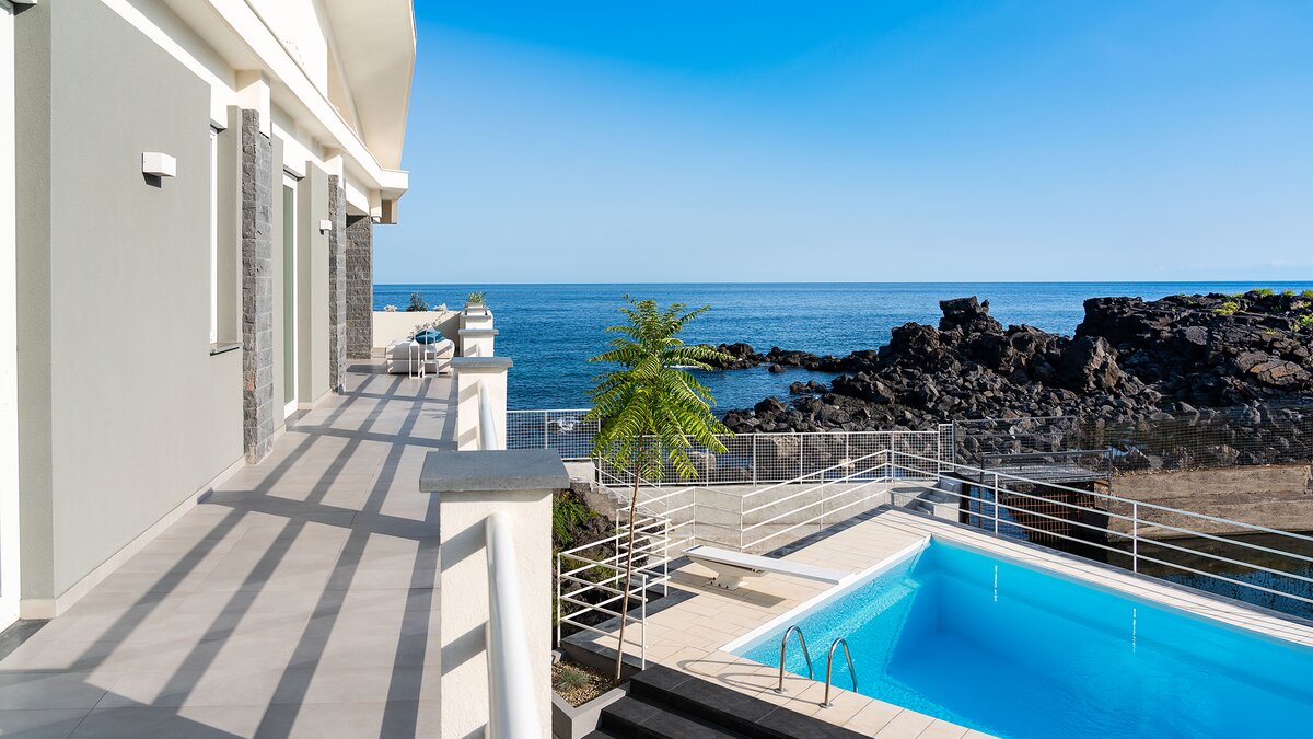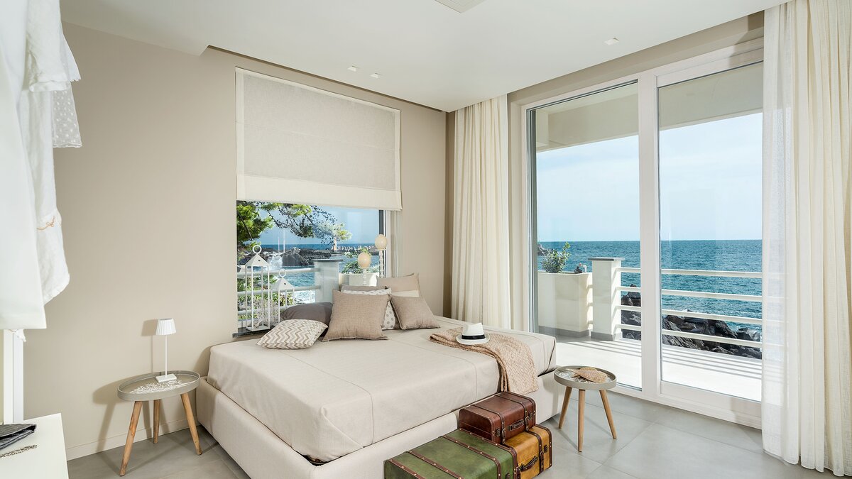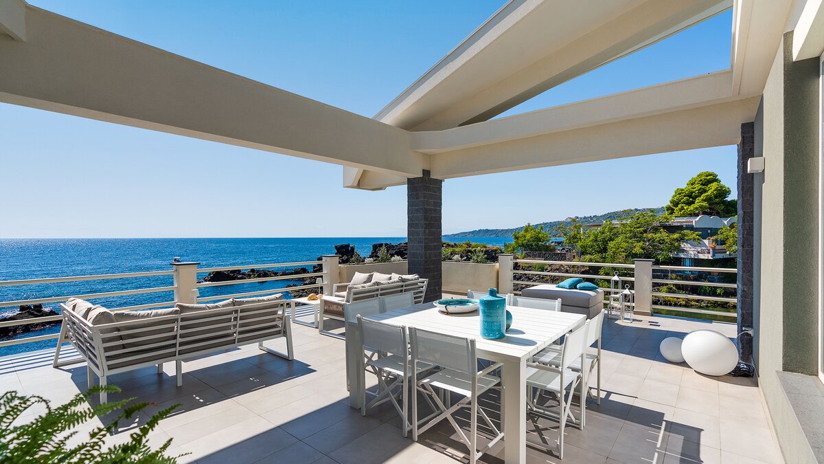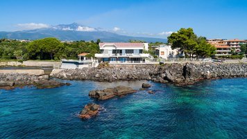 Stella di Mare ist eine elegante und moderne Villa im Osten Siziliens mit Blick auf Lavagesteinfelsen und das himmelblaue Meer. Denen Villa ist hell und luftig, in einem einladenden und modernen Stil eingerichtet. Im Erdgeschoss befinden sich ein Wohnzimmer mit Essecke und Küche sowie drei Schlafzimmer mit eigenem Bad. Es gibt auch ein Spielzimmer mit Tischtennis, Tischfußball und einem Boxsack. Eine Außentreppe führt in den ersten Stock, wo die Gäste einen hellen Wohn-, Ess- und Küchenbereich sowie fünf komfortable Schlafzimmer mit eigenem Bad finden. Denen Villa ist geschmackvoll und mit viel Liebe zum Detail eingerichtet und mit allem modernen Komfort ausgestattet, einschließlich Smart-TVs.