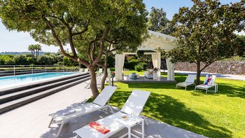 Das Anwesen ist von Terrassen und einem gepflegten Garten mit eigenem Swimmingpool umgeben. Dieser Villa ist der perfekte Ausgangspunkt, um die Umgebung zu erkunden. Der Ätna, Acireale, Catania, Taormina und Siracusa sind alle leicht mit dem Auto erreichbar.