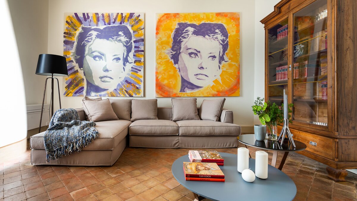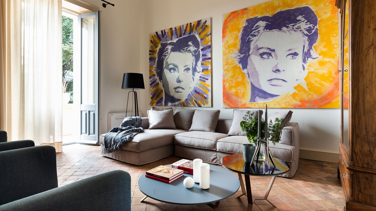 Im Inneren der Villa treffen moderne Interieurs auf traditionelle historische Elemente und schaffen eine reiche Mischung aus älteren und neueren Elementen. Im Erdgeschoss befinden sich vier der sechs Schlafzimmer der Villa, von denen eines über einen eigenen Wohnbereich verfügt, während jedes über ein eigenes Bad verfügt. Denen letzten beiden Schlafzimmer befinden sich im ersten und zweiten Stock, wobei die Master-Suite über ein eigenes Dampfbad verfügt. Im ersten Stock befindet sich auch ein schönes Wohnzimmer mit Kamin, das mit einzigartigen Kunstwerken und schönen Steinböden ausgestattet ist. Die Gäste können auch die Küche und das Esszimmer auf dieser Etage nutzen, die beide reichlich Tageslicht haben und mit markanten französischen Türen geschmückt sind, die sich auf Zitrusgärten öffnen.