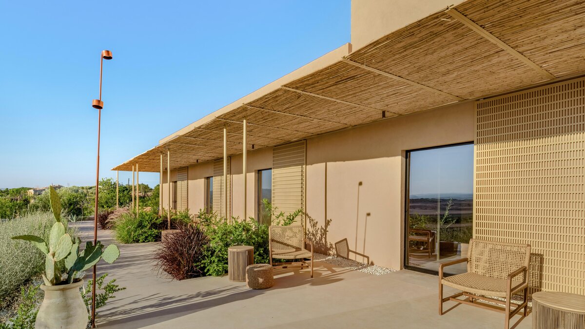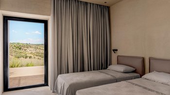 Das Design des The Olive Court spiegelt eine sorgfältige Balance zwischen modernem Komfort und lokalem Charakter wider. Deren Innenräume sind hell, raffiniert und einladend, mit klaren Linien und natürlichen Materialien, die die umliegende Landschaft widerspiegeln. Im Erdgeschoss fließt das Wohnzimmer mühelos in eine gut ausgestattete Küche und einen Essbereich über, ideal für entspannte Mahlzeiten und unkomplizierte Unterhaltung. Vier wunderschön eingerichtete Schlafzimmer bieten Komfort und Flexibilität: Drei Doppelschlafzimmer mit eigenem Bad führen direkt zum Garten, während ein Zweibettschlafzimmer mit eigenem Bad eine ebenso ruhige Umgebung bietet. Eines Suite verfügt über einen separaten Zugang, der den Gästen zusätzliche Privatsphäre bietet.