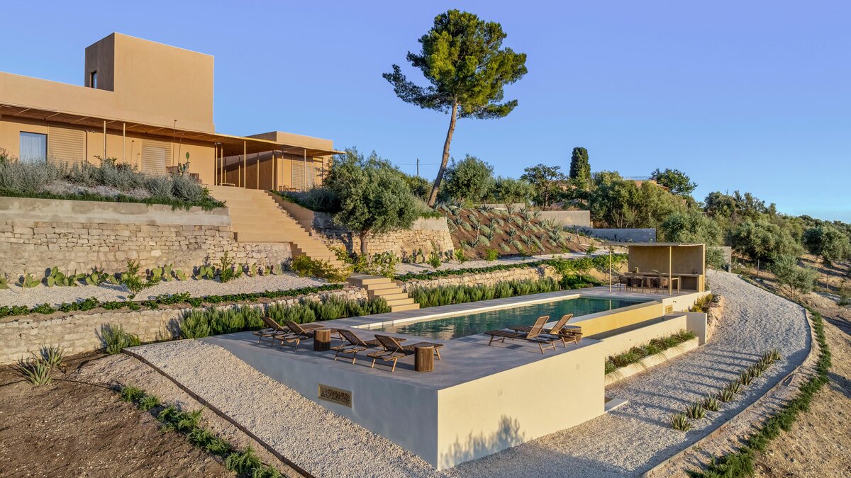Umgeben von einer hügeligen Landschaft und jahrhundertealten Olivenbäumen ist das The Olive Court eine ruhige und elegante Villa für entspanntes Leben im Südosten Siziliens.