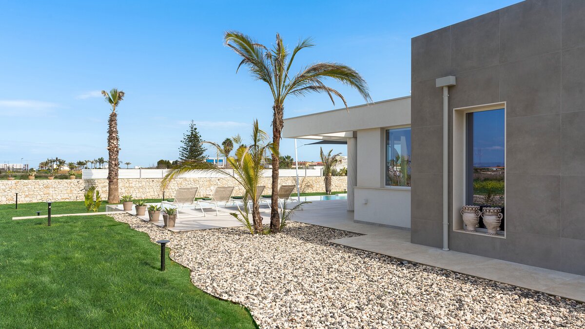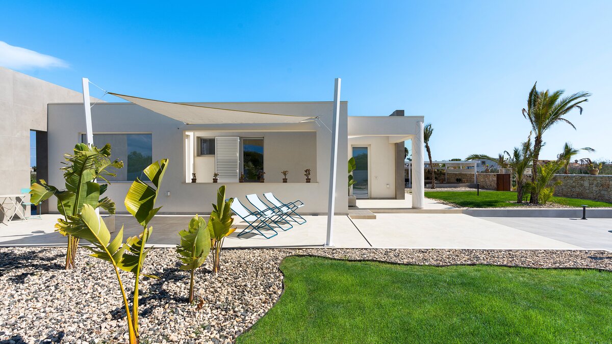Im Inneren verbindet die Villa Pomelia moderne Eleganz mit Zweckmäßigkeit. Dessen offenes Erdgeschoss ist hell und einladend und vereint einen Sitzbereich, einen Essbereich und eine voll ausgestattete Küche, die für ein geselliges Wohnen konzipiert ist. Jedes Schlafzimmer ist für Komfort klimatisiert und verfügt über große Fenster, die die Innenräume mit den üppigen Gärten im Freien verbinden. Dessen Design der Villa fördert ein nahtloses Innen- und Außenleben mit viel Platz, um sich zu treffen oder sich in ruhigere Ecken zurückzuziehen. Denen Gäste können ihre Mahlzeiten drinnen genießen oder draußen in die überdachte Außenküche und den Essbereich im Freien gehen, wo lange Mittag- oder Abendessen in der warmen sizilianischen Luft genossen werden können.