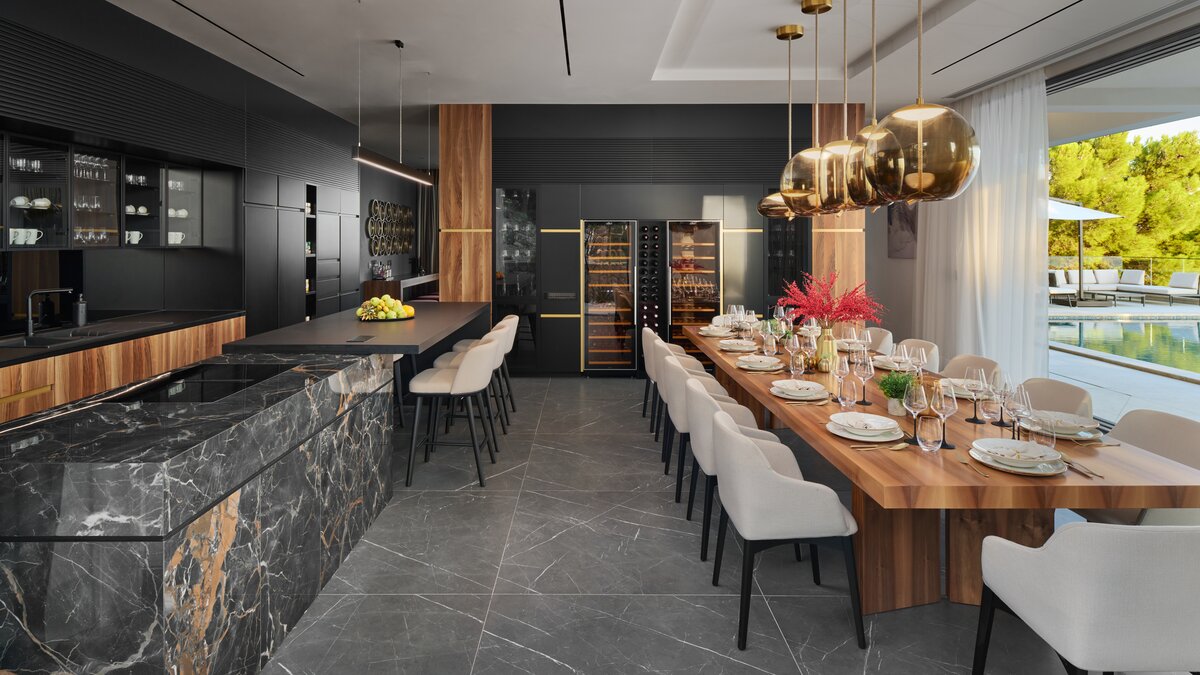 Im Inneren präsentiert sich die Villa Venus mit modernem Design mit künstlerischen Akzenten, die das Gefühl von Erhabenheit, Raffinesse und Stil unterstreichen. Denen hellen Wohnbereiche sind für Komfort eingerichtet, während die acht Schlafzimmer mit eigenem Bad für Privatsphäre sorgen. Vier der Schlafzimmer bieten direkten Zugang zur Terrasse und private Jacuzzis, ideal zum Entspannen nach einem ereignisreichen Tag. Deren elegante Küche der Villa ist ideal für die Zubereitung hausgemachter Mahlzeiten, während die geräumige Terrasse eine überdachte Außenküche und einen Essbereich bietet, ideal für Mahlzeiten im Freien mit Ihren Lieben, begleitet von einer unvergesslichen Kulisse. Deren Villa verfügt auch über ein eigenes Fitnessstudio für Fitnessbegeisterte und einen schicken Innenpool.