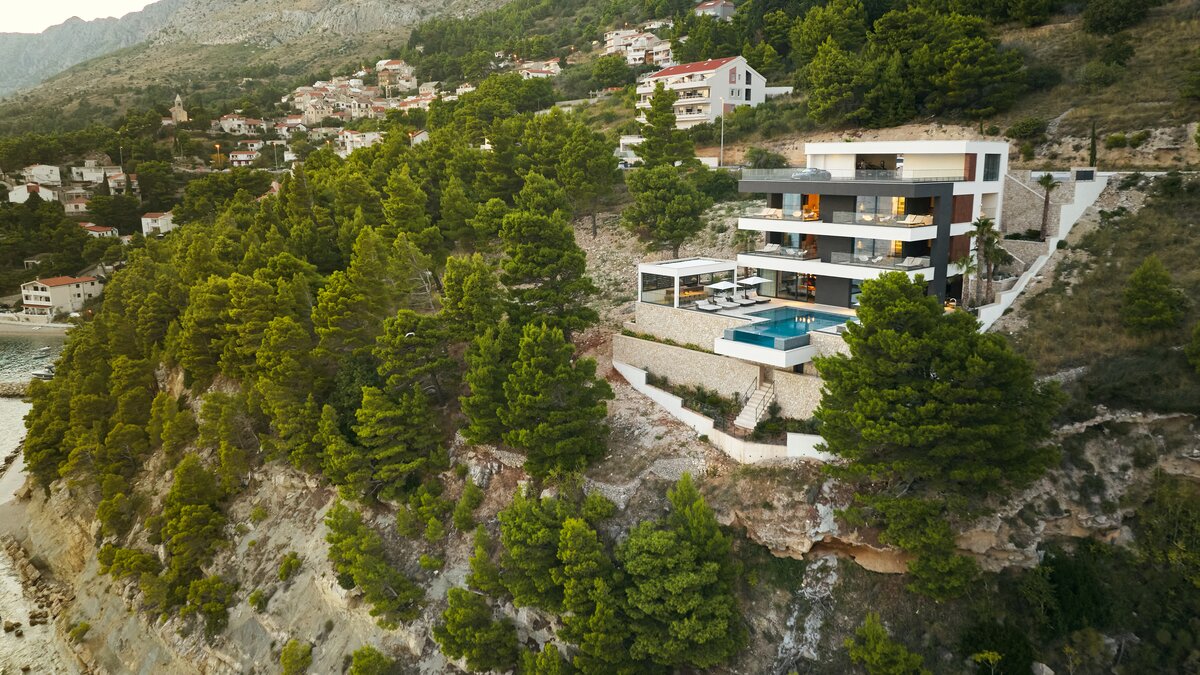 Das Äußere der Villa Venus verfügt über einen Infinity-Pool, der einen erfrischenden Rückzugsort an sonnigen Tagen bietet und mit Liegestühlen und Sonnenschirmen geschmückt ist. Der Strand und die lokalen Restaurants sind zu Fuß erreichbar, sodass die Gäste die Gegend bequem auf eigene Faust erkunden können. Abenteuerlustige können Aktivitäten wie Klettern und Rafting in der Nähe unternehmen. Eine kurze 15-minütige Fahrt führt zum charmanten Fischerdorf Omiš, während die pulsierende Stadt Split nur ein bisschen weiter an der Küste liegt, was die Villa Venus zu einem ausgezeichneten Ausgangspunkt macht, um Dalmatien zu erkunden.