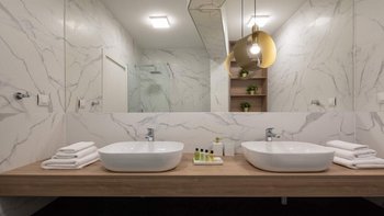 Mit direktem Meerzugang gepaart mit sensationellem Meerblick wurde die Villa Willow geschickt gestaltet, um ihre unglaubliche Lage zur Geltung zu bringen. Dieser Designer-Villa ist ein modernes Meisterwerk vor dem Hintergrund endloser blauer Ausblicke. Im Inneren befindet sich ein geräumiger Wohn- und Essbereich, der geschmackvoll in satten Blautönen und eleganten Grautönen gehalten ist, mit modernen Kunstwerken an den Wänden und Panoramafenstern, die zu dieser atemberaubenden Aussicht einladen. Zu den herausragenden Designmerkmalen gehören eine säulengerahmte Treppe und eine wunderschöne Marmorkücheninsel mit schicken Pendelleuchten in Gold über dem Kopf. Eine willkommene Ergänzung zu diesem luxuriösen Wohnbereich ist ein voll ausgestattetes Fitnessstudio und eine Infrarotsauna. Im Obergeschoss befinden sich vier anständige Schlafzimmer, die in der gleichen opulenten Farbpalette wie der Rest des Anwesens eingerichtet sind und mit bequemen Doppelbetten ausgestattet sind; jedes hat Zugang zu einem eigenen Badezimmer mit Dusche en suite mit Marmordusche und Doppelwaschbecken.