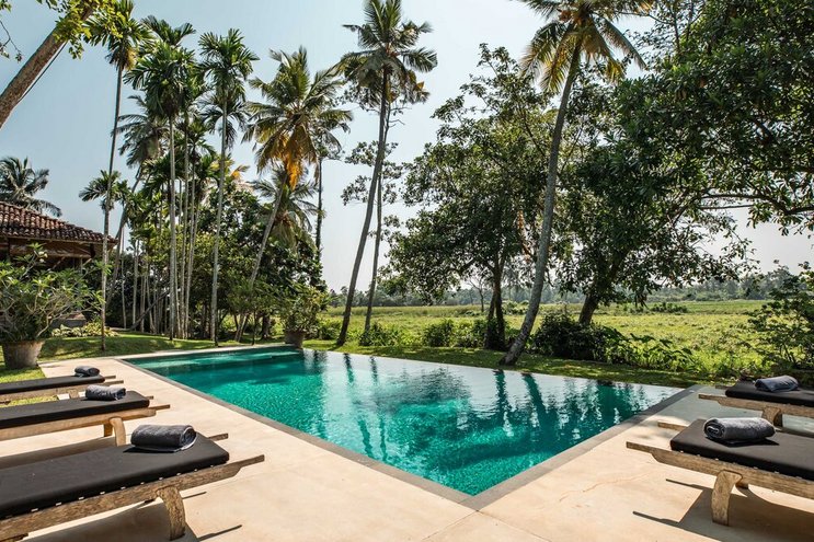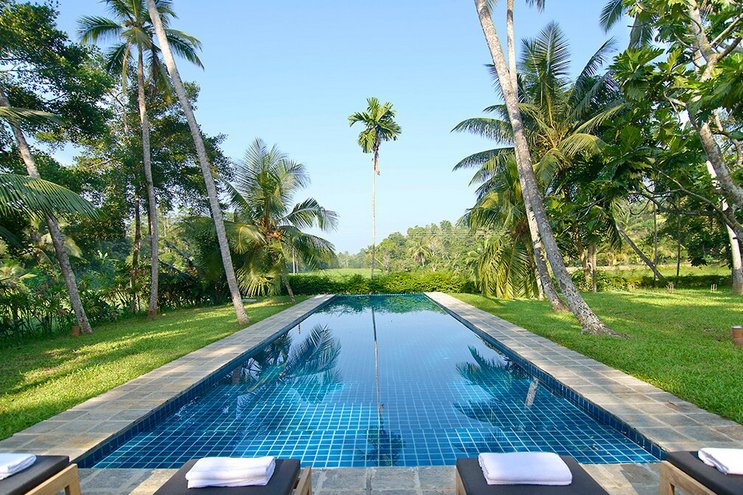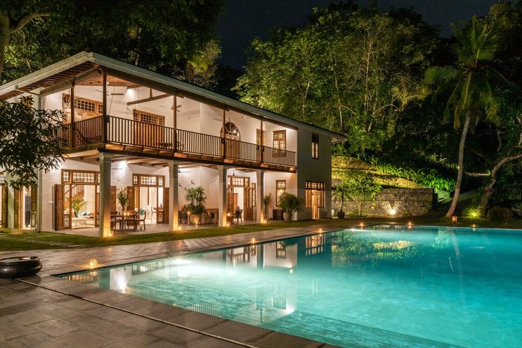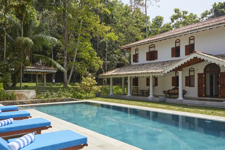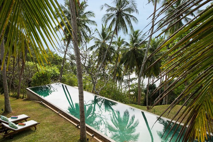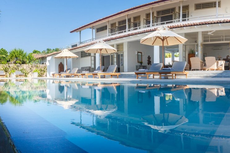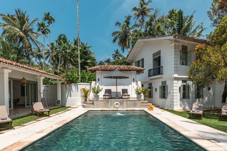 Villa Frangipani ist ein luxuriöser Rückzugsort am See mit einem 20 m langen Infinity-Pool und einem Privatkoch, in der Nähe einiger der besten Strände Sri Lankas an der Südküste.