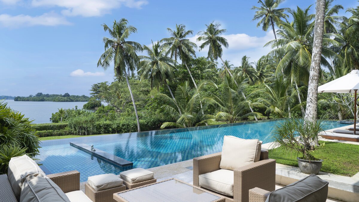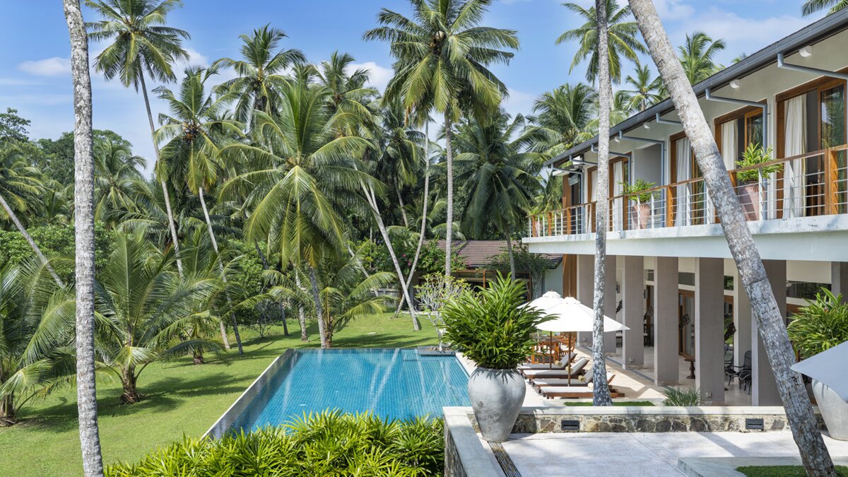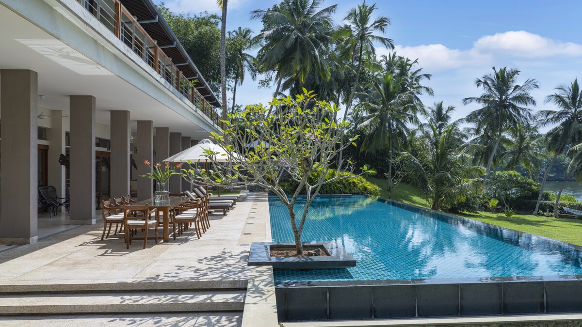 Villa Frangipani ist ein luxuriöser Rückzugsort am See mit einem 20 m langen Infinity-Pool und einem Privatkoch, in der Nähe einiger der besten Strände Sri Lankas an der Südküste.