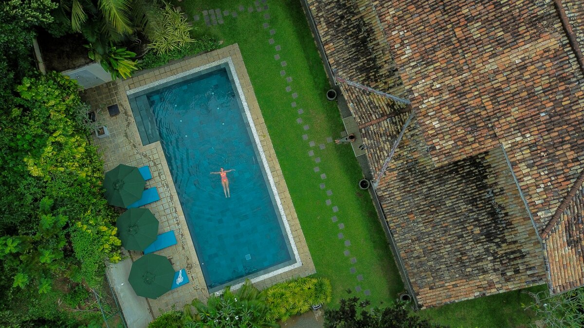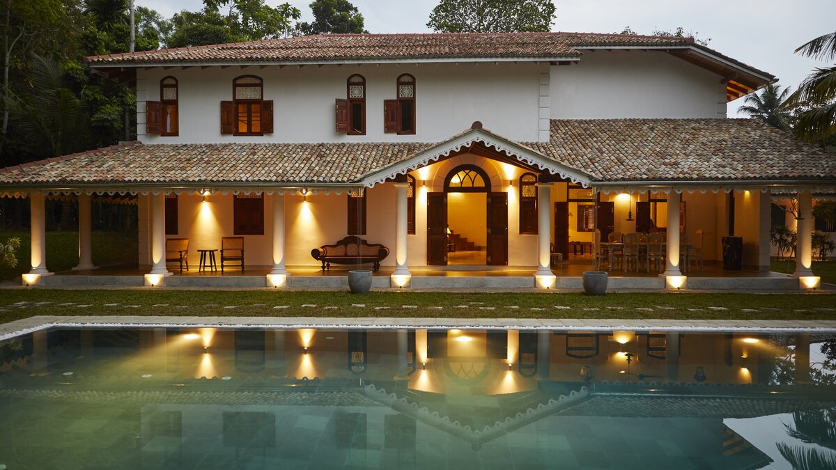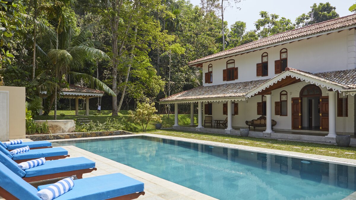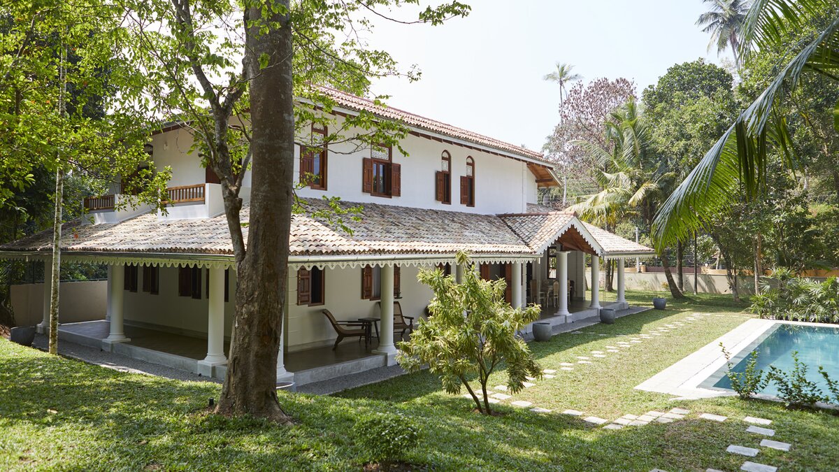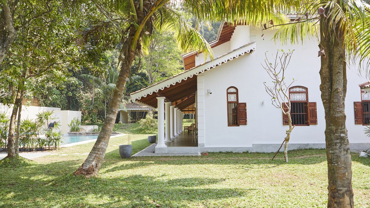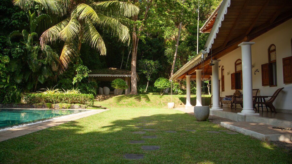 Kingfisher ist eine private Villa mit vier Schlafzimmern in Gehweite zum Strand in der Nähe von Weligama, umgeben von üppigem Grün.