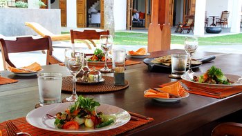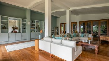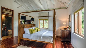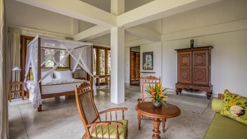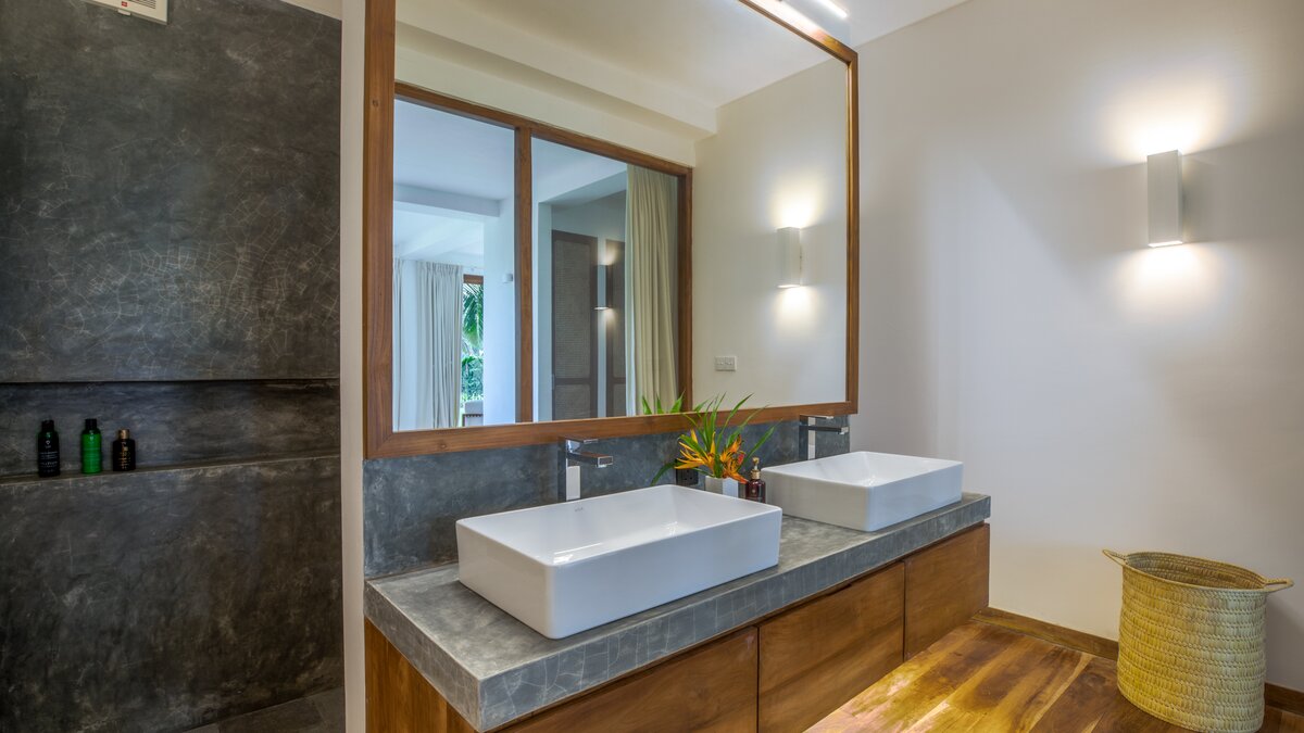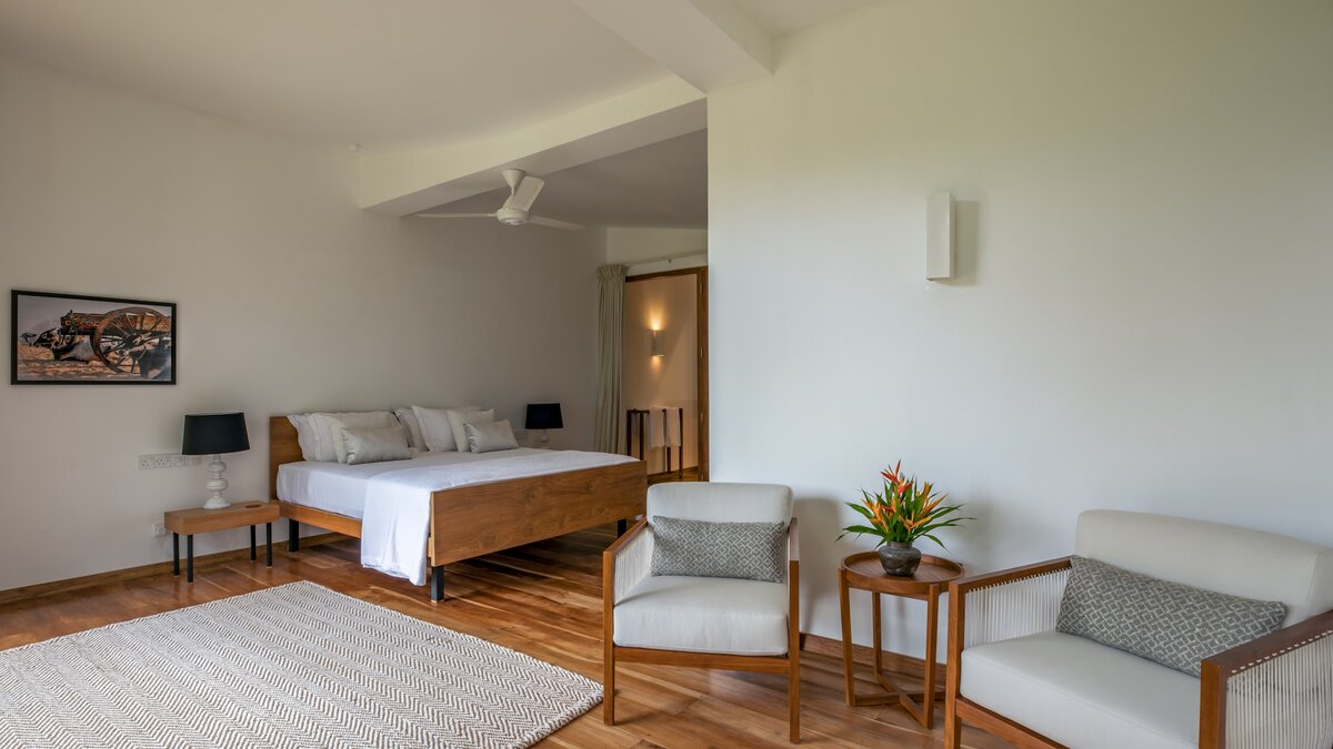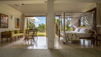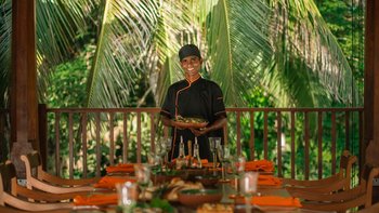 Das Rambutan wurde kürzlich mit einem Schwerpunkt auf Komfort renoviert und mit neuen Möbeln und kleinen Details in jede Ecke der Villa integriert, um sich für die Gäste wie ein Zuhause zu fühlen. Dessen offener Grundriss Wohn- und Essbereich im Erdgeschoss ermöglicht es dem Raum, sich wirklich zu öffnen und lädt dazu ein, Gespräche zwischen den Gästen freier zu führen, ohne architektonische Einschränkungen. Ebenfalls auf dieser Ebene bieten eine klimatisierte Bibliothek und ein Arbeitsbereich ruhige Orte zum Entspannen, und die Küche der Villa befindet sich ebenfalls hier. Deren Kochservice ist in Ihrem Aufenthalt inbegriffen. Genießen Sie frische tropische Früchte aus der Region oder gönnen Sie sich eine große Auswahl an Meeresfrüchten direkt aus dem Indischen Ozean. Unser erfahrener Küchenchef kocht sowohl westliche und auch lokale Gerichte nach Ihren Wünschen. Im ersten Stock des Haupthauses befinden sich insgesamt vier Schlafzimmer mit eigenem Bad, jedes mit Klimaanlage und großzügiger Aufteilung, von denen zwei über einen Balkon verfügen, mit Blick auf den Pool und einen weit entfernten tropischen Baldachin. Dessen untere Gartenebene verfügt über drei weitere Schlafzimmer mit eigenem Bad sowie ein Spielzimmer mit Tischtennis.