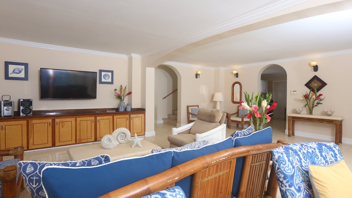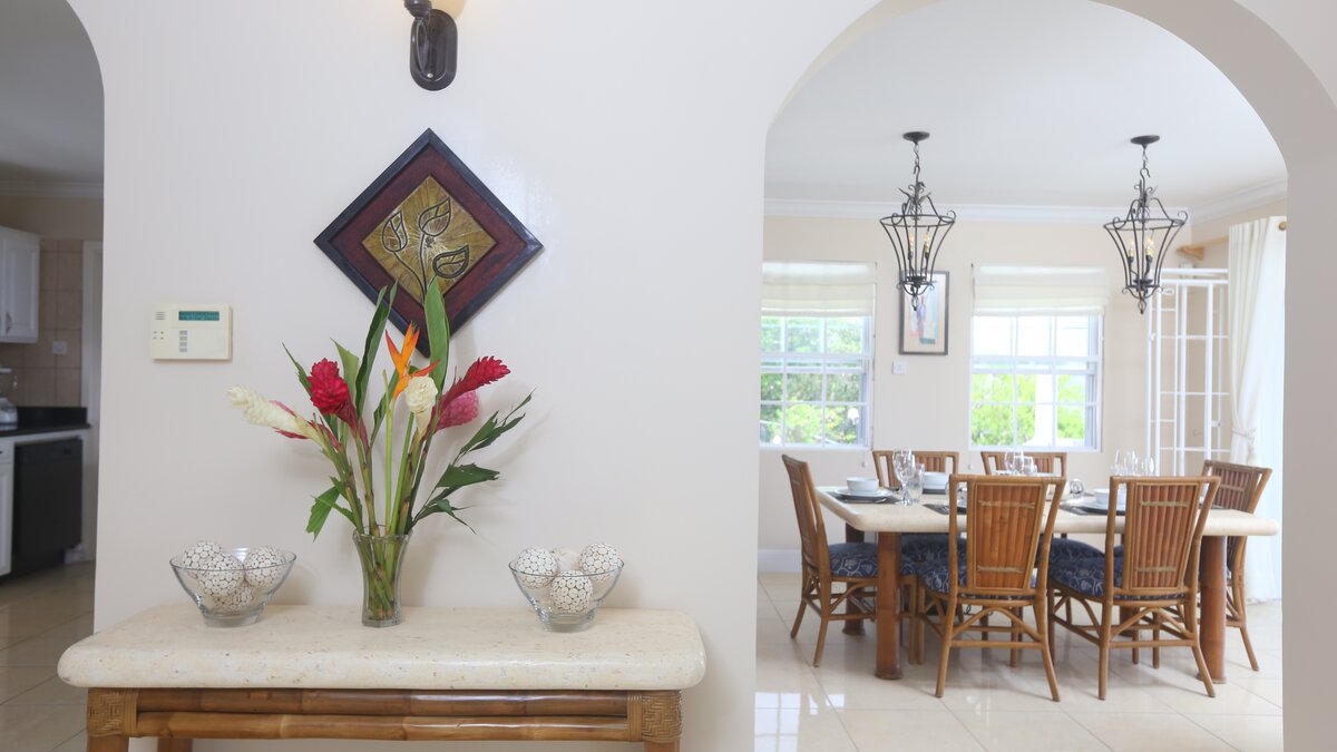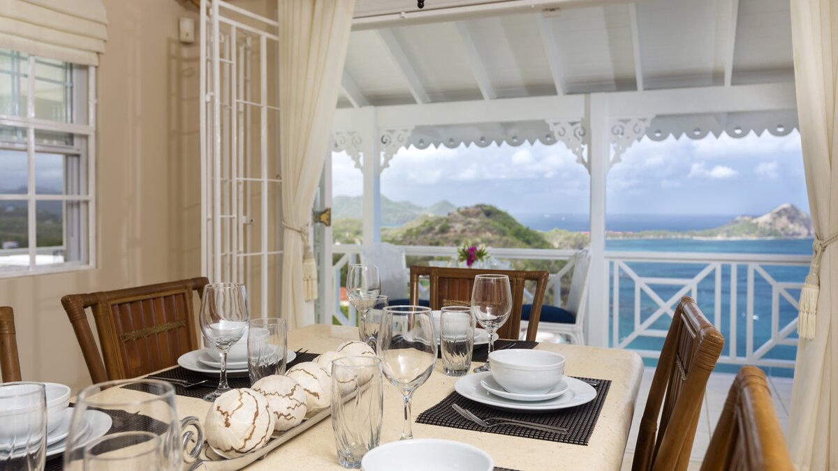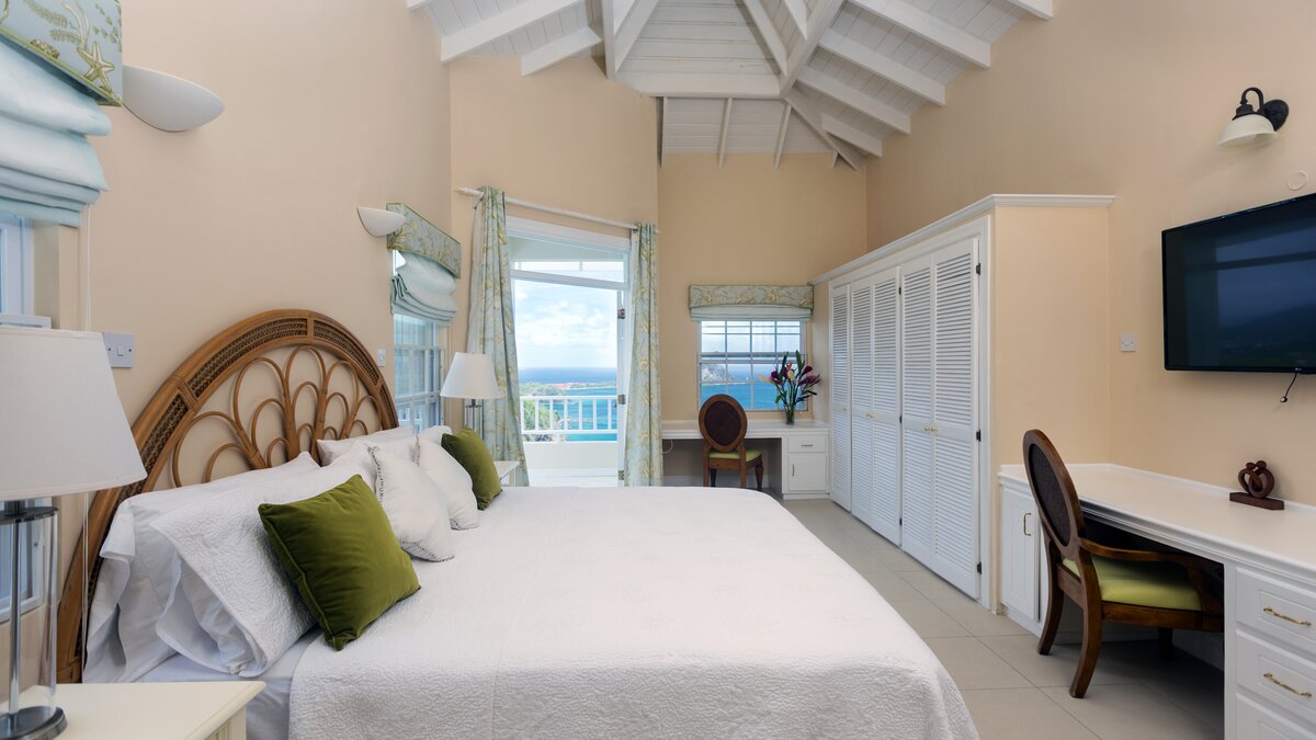 Diese Luxusvilla in Saline Point in der Nähe des Cap Estate ist wunderschön und mit viel Liebe zum Detail gestaltet. Denen geräumigen, hellen und luxuriösen Zimmer verfügen über eine ruhige Farbpalette in sanften Marine-Chic-Tönen und sind alle äußerst komfortabel und stilvoll eingerichtet, mit prallen gepolsterten Sofas und feiner Bettwäsche. Es gibt eine intelligente, hochmoderne Küche mit Frühstückstheke und Essbereich mit Zugang zu den Terrassen. Drei Schlafzimmer mit eigenem Bad befinden sich im ersten Stock, zwei davon haben Super-Kingsize-Betten und einen eigenen Balkon, während das dritte Schlafzimmer ein Zweibett ist, das bei Bedarf zu einem Doppelbett zusammengestellt werden kann. Auf der Ebene der Poolterrasse befindet sich eine helle und luftige, in sich geschlossene Apartment-Suite mit einem vierten Schlafzimmer und einem OFFENER GRUNDRISS Wohnzimmer mit Küchenzeile und Sitzbereich.