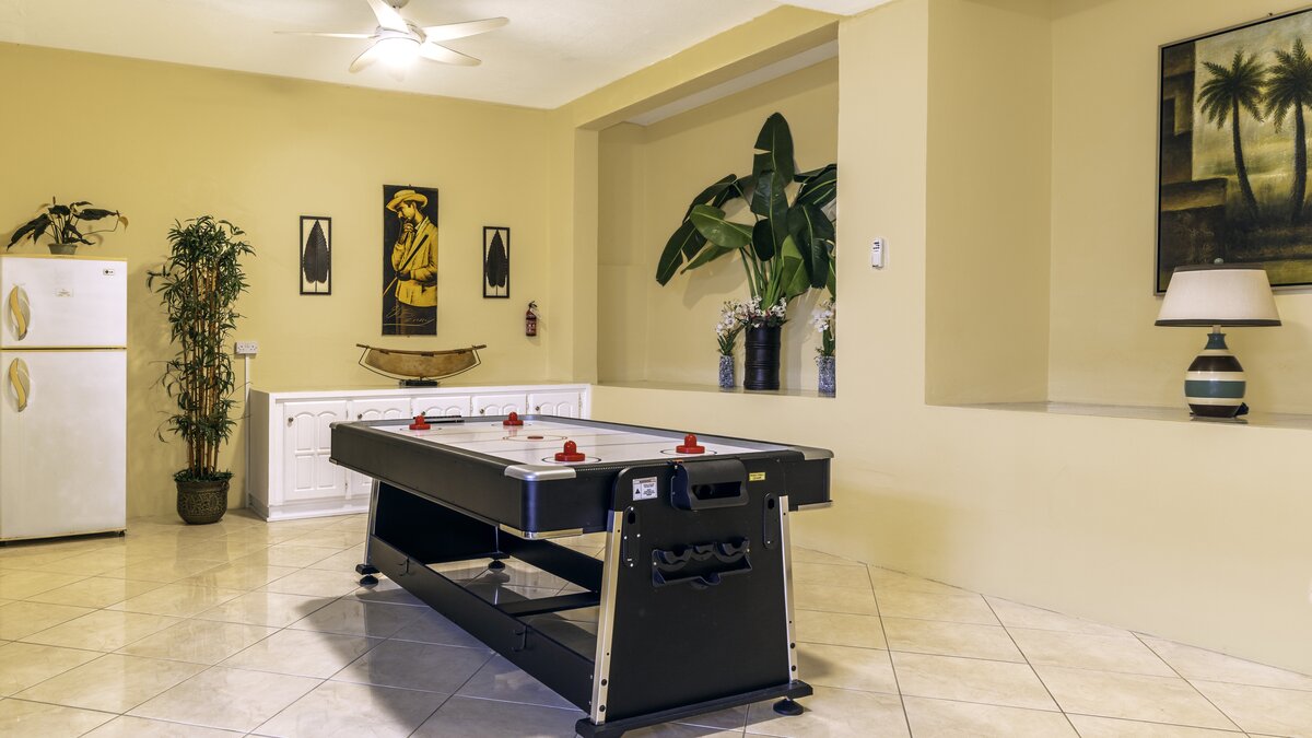 Der Panoramablick von der Terrasse im Erdgeschoss ist fantastisch – mit Blick auf das Meer und den benachbarten 18-Loch-Championship-Golfplatz gibt es einen Esstisch und bequeme Sitzgelegenheiten im Freien, die die Aussicht genießen, ideal für Abendessen im Freien oder Cocktails bei Sonnenuntergang. Im Inneren ist das Erdgeschoss hell und offener Grundriss und vereint einen weiteren Essbereich, eine gut ausgestattete Küche und ein geräumiges Wohnzimmer mit einer schönen Gewölbedecke und großen Fenstertüren, die zur Terrasse führen. Der Rest des ersten Stocks besteht aus einem Super-Kingsize-Schlafzimmer mit begehbarem Kleiderschrank und einem zusätzlichen Schlafzimmer mit Doppelbett und eigenem Bad. Das Hauptschlafzimmer öffnet sich zu einem Julia-Balkon und das zweite Doppelschlafzimmer öffnet sich zur vorderen Terrasse. Gehen Sie die Treppe hinunter in das untere Erdgeschoss und es gibt einen weiteren geräumigen, hellen Essbereich mit einem wunderschönen, durch einen Ventilator gekühlten offenen Raum für absolute Entspannung. Ein brandneues Spielzimmer bringt den ganzen Familienspaß, mit einem großzügigen 7ft Billardtisch und Airhockey – ein Mini-Basketballfeld steht ebenfalls außen zur Verfügung. Es gibt drei weitere große Schlafzimmer im unteren Erdgeschoss – ein Doppelschlafzimmer mit Bad en Suite und Kingsize- und Doppel-Sharing mit Zugang zu einem separaten Duschbad. Dessen untere Erdgeschoss hat direkten Zugang zum Poolbereich durch die Terrassentüren des Wohnzimmers. Ein weiterer Esstisch im Freien bietet Platz für 6 Gäste, und es gibt einen Privater Pool, Liegestühle auf der Terrasse, einen schattigen Pavillon mit bequemen Sofas und herrlichen Kokospalmen, die über das Grundstück verstreut sind.