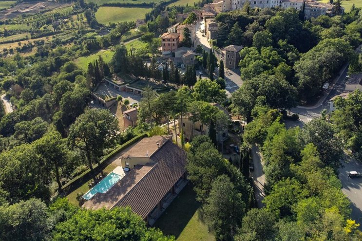 Mit einem privaten See, Wäldern und Olivenhainen und herrlichem Blick auf die weit entfernten Hügelschlösser ist diese Luxusvilla in der Toskana ein exquisiter Rückzugsort, der Ruhe und Raffinesse ausstrahlt.