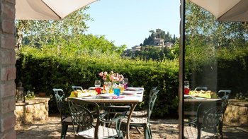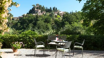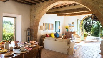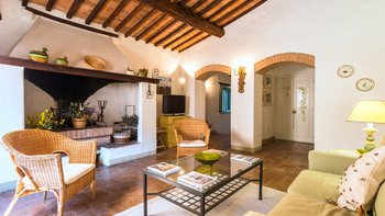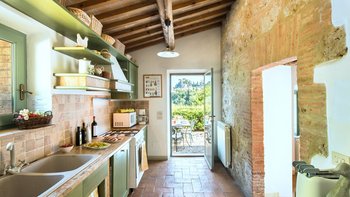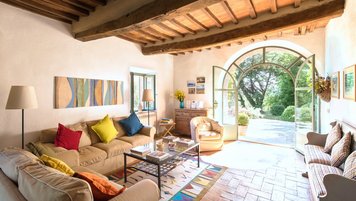 Der Zugang zu dieser Villa ist ziemlich bezaubernd, entlang einer Allee mit Buchen-, Eichen- und alten Kastanienbäumen und vorbei an einem hundert Jahre alten Zedernbaum bis zu dem hübschen Steinhaus, das in Kletterrosen gehüllt ist, mit einem herrlichen Blick auf Cetona, das eine märchenhafte Kulisse bildet. Auf dem Grundstück befinden sich weite Rasenflächen mit Blumen und Sträuchern, der Swimmingpool liegt zwischen versilberten Olivenbäumen und duftendem Lavendel. Denen geräumigen Zimmer der Villa sind attraktiv im frischen Landhausstil eingerichtet. Im Erdgeschoss befindet sich ein charmantes Wohn-/Esszimmer, das durch einen riesigen Steinbogen unterteilt wird, der von großen Doppeltüren zum Garten getragen wird, während ein zweites Wohnzimmer im oberen Stockwerk einen coolen ländlichen Look hat und sich zur Spitze der steinernen Außentreppe hin öffnet. Mit Waldwegen vor der Haustür ist die Villa nur 2,5 km von Cetonas Geschäften und guten Restaurants entfernt, mit Golfspielen in Panicarola, Wassersport am Trasimenischen See, einem hochmodernen Spa in San Casciano dei Bagni, Citta della Pieve und dem faszinierenden Cortona im Umkreis von 50 km. Von hier aus sind interessante Städte sowohl in der Toskana als auch in Umbrien und Rom und Florenz mit dem Schnellzug von Chiusi aus leicht zu erreichen.