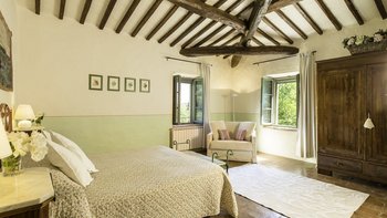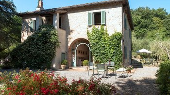 In einer atemberaubenden Waldlandschaft, mit wunderschönem bukolischem Blick auf zeitlose Hügel und Täler, ist diese Familienvilla in der Toskana von Ruhe durchdrungen und dennoch in der Nähe historischer Städte.