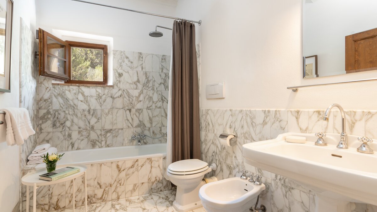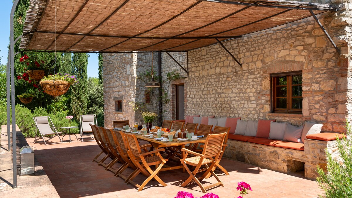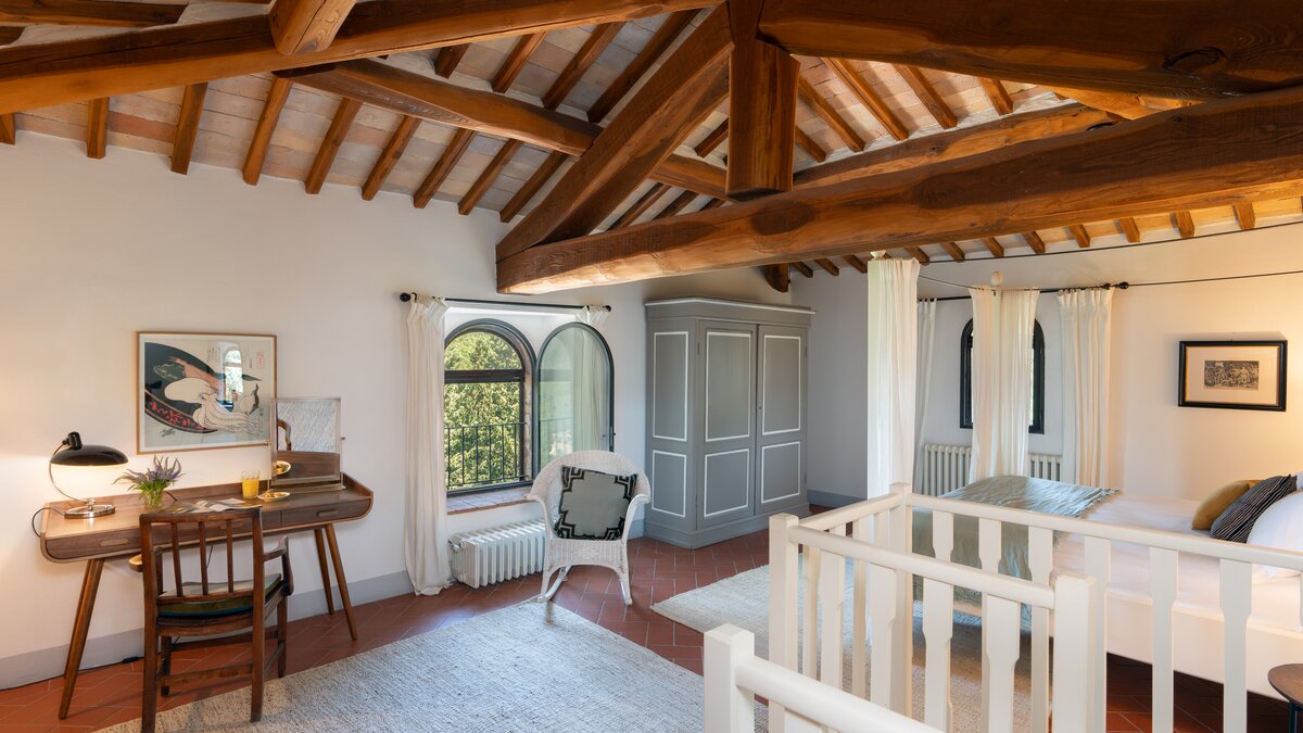 Abgeschieden in den Falten bewaldeter Hügel gelegen, ist dieses alte Steinhaus mit seiner zeitlosen Landschaft perfekt zu Hause. Von außen beeindruckend, ist es in seinen großen, luftigen Räumen willkommen, in denen geglättete Holzbalken und Terrakotta-Fußbodenfliesen einen zeitgemäßen Rahmen für den Komfort des 21. Jahrhunderts schaffen. Rustikaler Chic verschmilzt unmerklich mit schlichter Eleganz und Bildern und Fotografien der künstlerischen Eigentümer. In der charmanten Frühstücksküche, gut ausgestattet mit modernen Geräten, im kühlen Landhausstil und im angrenzenden geräumigen, aber gemütlichen Wohnzimmer. Ein separater Bibliotheksbereich mit umfangreicher Büchersammlung und ein Fernsehraum sorgen für ungezwungene soziale Räume, schöne Schlafzimmer verfügen über Himmelbetten, Badezimmer sind mit poliertem Marmor und ein Spielzimmer mit Tischtennis, das sich zum Garten hin öffnet. Hier gibt es schattige Terrassen zum Essen oder einfach zum Entspannen und lange Rasenflächen, die von Lavendelbänken gesäumt und mit Bäumen bestreut sind. Der schöne Swimmingpool befindet sich in einem erhöhten und geschützten, sonnigen Ort ca. 50 m von der Villa entfernt. Große Gruppen teilen sich das gleiche Privatanwesen wie die beliebte Schwestervilla Vercenni und vermieten beide Häuser und speisen gemeinsam auf der Terrasse des Vercenni. Dessen Personal kümmert sich sehr gut um die Gäste und das Casa di Sopra bietet einen Kochservice für eine besonders entspannte Atmosphäre.
