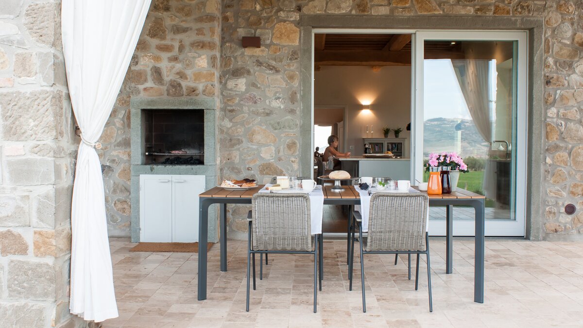 Zwischen den Hügeln von Volterra befindet sich dieses luxuriöse Ferienhaus, das von einem italienisch-skandinavischen Ehepaar entworfen wurde. Beim Betreten des Hauses spüren Sie den Einfluss der skandinavischen Ursprünge, eleganten Asoft-Farben, Holzböden und großen Fenstern – ein Haus, das für die Eigentümer selbst geschaffen wurde. Einem großen offenen Grundriss Bereich begrüßt Sie bei der Ankunft mit den Wohn-Ess- und Küchenbereichen, die die schöne, einzigartige Holztreppe in der Mitte des Raumes umgeben. Den gemütlichen Wohnbereich mit offenem Kamin mit Sofas und Sesseln, einen zweiten kleineren Fernsehbereich, einen Essbereich mit großem Holztisch und den voll ausgestatteten Küchenbereich mit allen modernen Geräten. Es gibt eine überdachte Terrasse mit spektakulärem Blick auf Volterra in der Ferne, wo Sie morgens frühstücken oder abends einen Aperitif genießen können. Dieser Villa ist ein Traum für diejenigen, die Entspannung und den Genuss von luxuriöser, komfortabler Einrichtung in einer friedlichen, wunderschönen toskanischen Umgebung suchen. Denen Schlafzimmer im Obergeschoss verfügen alle über ein eigenes Duschbad mit begehbaren Duschen und luxuriösen Pflegeprodukten, das Schlafzimmer im Untergeschoss verfügt über ein Bad, das auch für behinderte Gäste geeignet ist. Ein gemütliches Gefühl mit sanften Lichtfarben und schönen Materialien.
