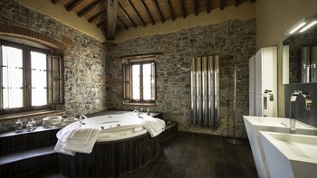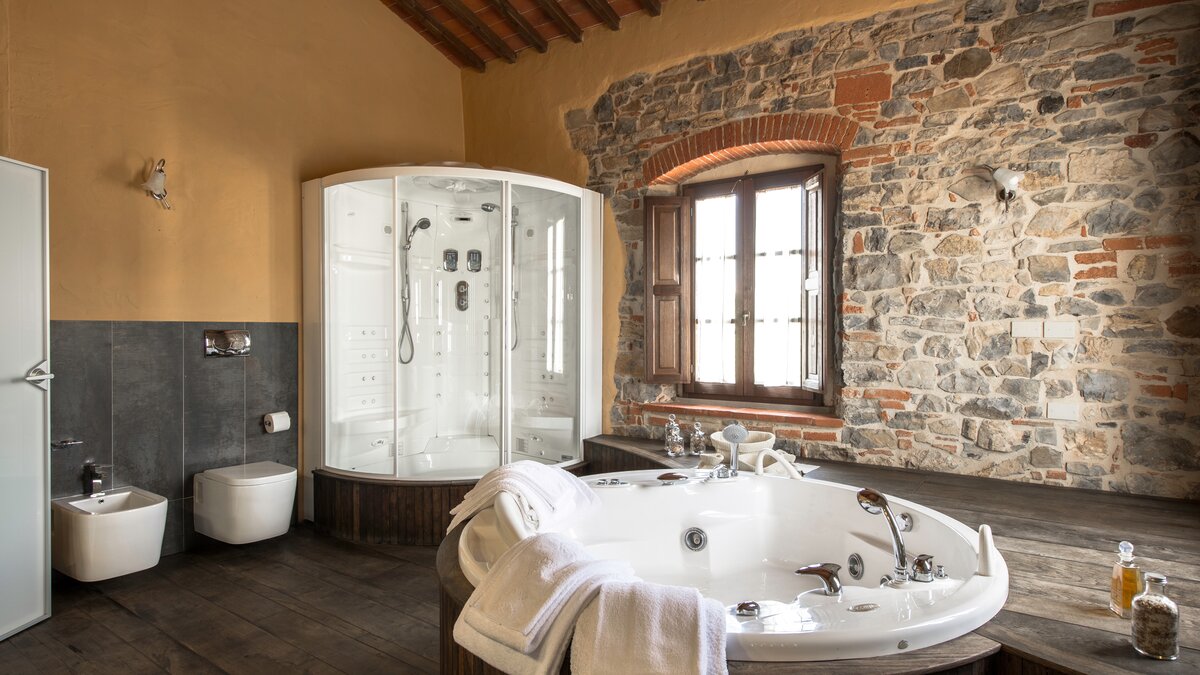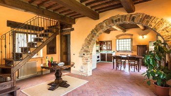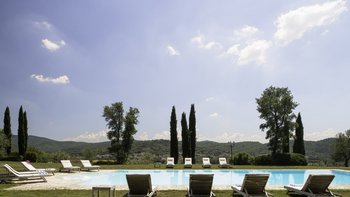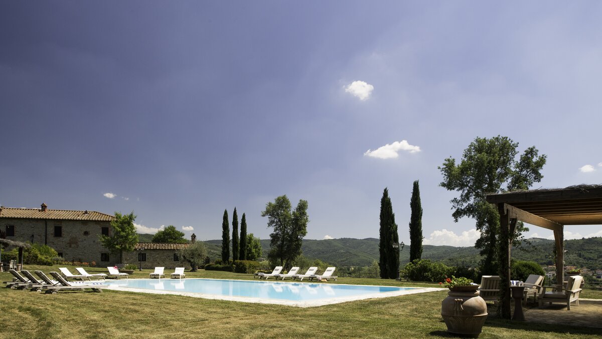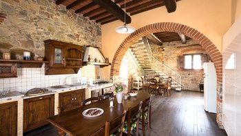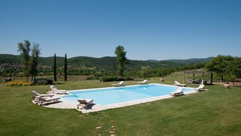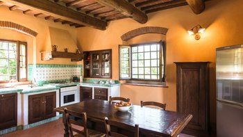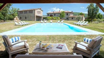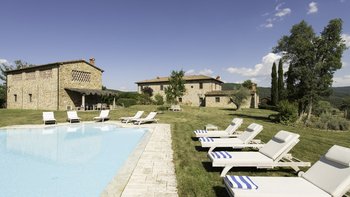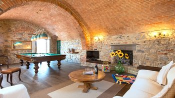 Perfekt für ein besonderes Treffen mit Freunden oder der Familie, ist dieses bemerkenswerte Anwesen umgeben von 60 Hektar Privatgrundstück mit Weinbergen, Oliven und Walnusshainen. Dessen weitläufige Rasenflächen umfassen einen Kinderspielplatz, einen riesigen Pool mit eingebauten Stufen und einer großen möblierten Pool-Pergola und geräumige Pergola-Bereiche im Freien außerhalb von Colonica und Granaio zum Mittagessen oder Faulenzen. Jedes der drei Gebäude der Villa ist unabhängig voneinander, aber günstig in der Nähe gelegen und hat seinen eigenen Charakter und seine eigenen Einrichtungen. Zusammen ist das Ganze viel größer als die Summe seiner Teile und bietet eine Auswahl an sozialen Räumen zum Essen und Erholen.Das größte Haus, Colonica, verfügt über drei Schlafzimmer, einen Essbereich, der groß genug ist, um die ganze Gruppe zu bedienen, einen geräumigen Sitz-/Billardraum und ein großes, hochmodernes Badezimmer mit Sauna, Dampfbadund Wassermassage und Dusche und ein weiteres smartes Duschbad. Dessen kleinste, Fienile, bietet auch Platz für ein „vollständiges Haus“ um seinen runden Tisch. Deren Granaio mit zwei Schlafzimmern verfügt über ein Wohnzimmer mit Sat-TV und zwei geräumige Schlafzimmer, ebenfalls mit Smart-Badezimmern. Deren sehr weitläufige Gärten mit Rasen und Kinderspielplatz mit Tischtennis sind ideal für Familien. Ein kompletter Kochservice kann hinzugefügt werden, und die Villa ist nur 3 km von Geschäften und einem Restaurant in Badia Agnano entfernt, mit mehreren größeren Dörfern ca. 10 km entfernt.